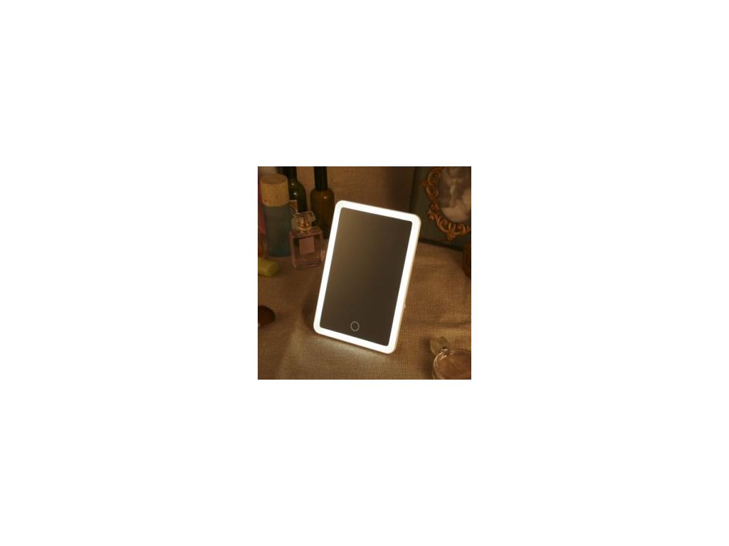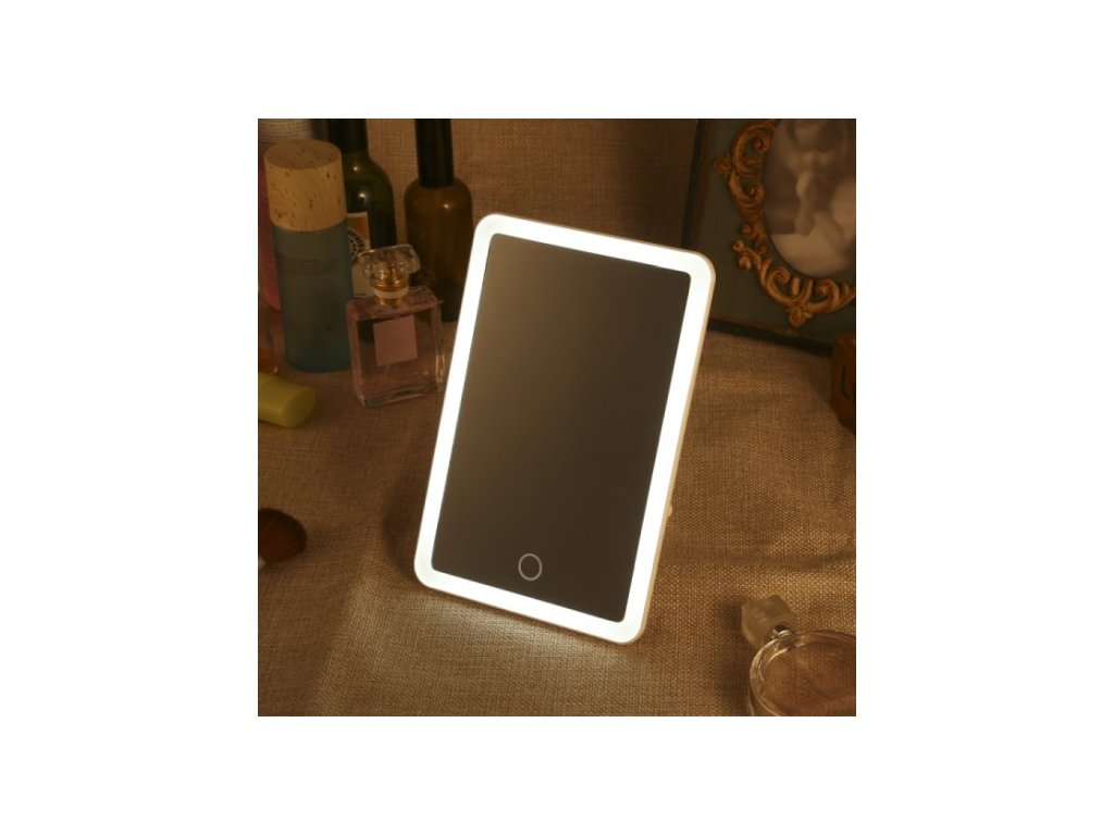 Kosmetické zrcátko je vybaveno stojanem, který umožňuje nastavení v úhlu 180 stupňů.