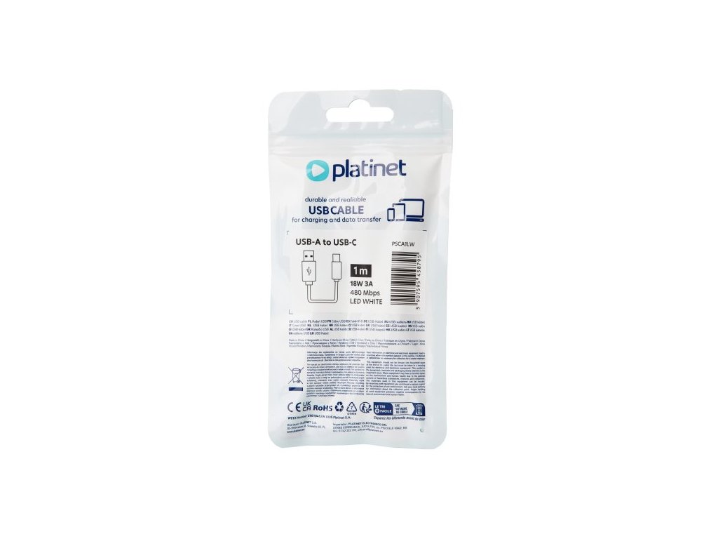 Typ konektoru: PLATINETIN, který je vybaven konektorem pro připojení k elektrické síti: USB-A na USB-C, díky čemuž je kompatibilní s mnoha moderními zařízeními, jako jsou chytré telefony, tablety a další zařízení využívající konektor USB-C.