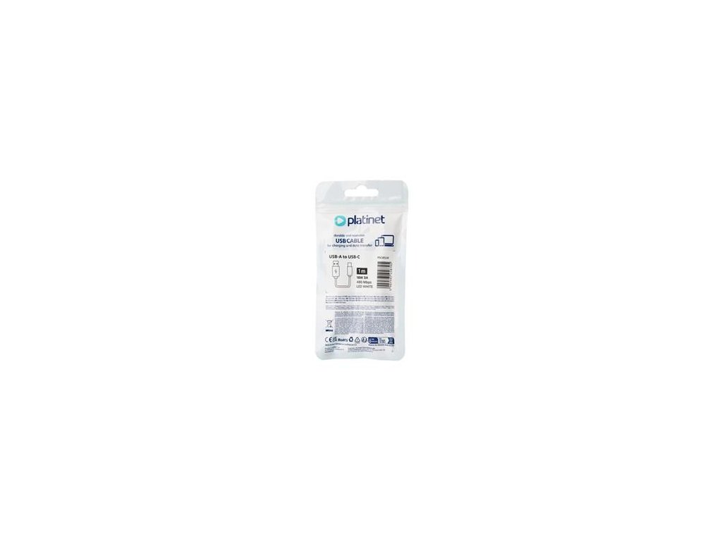 Platinet Nabíjecí Kabel USB-A - USB-C 3A, 18W, 1m, LED bílý