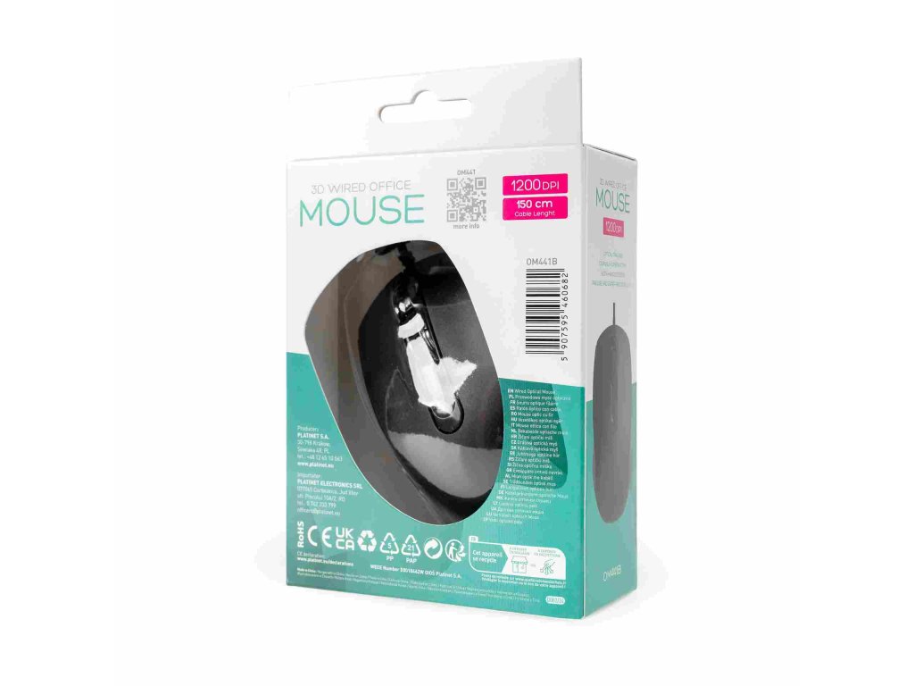PLATINET OMEGA PC MYŠ 3D, OFFICE, 1200DPI, 1.5M USB-A ČERNÁ