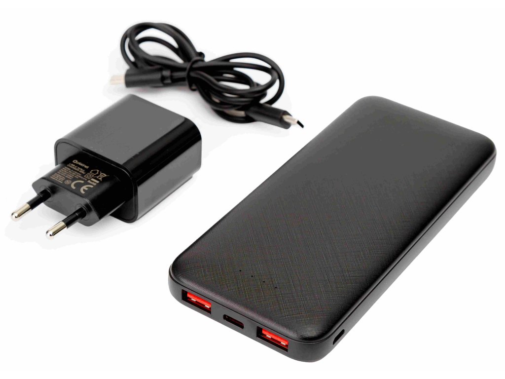 Set 3v1, s kterým udržíte vaše mobilní zařízení vždy plné energie a nebudete se na cestách muset dále stresovat rychle se snižujícím stavem baterie. SET OBSAHUJE: • Powerbanku o kapacitě 10000mAh s třemi porty: 1xUSB-C, 2xUSB-A , který zajistí výkon až 20W při nabíjení s technologií PD (Power Delivery). • Síťová nabíječka o výkonu 20W s technologií PD a USB-C konektorem • Kabel USB-C / USB-C o délce 100 cm, zajišťující stabilní maximální výkon s obou nabíjecích zařízení HLAVNÍ VLASTNOSTI: • Kapacita: 10 000 mAh / 3,7 V • 20W PD nabíječka: Technologie Power Delivery 3.0 • Délka kabelu: 100 cm (USB-C na USB-C) • Výstupní porty: 2x USB-A, 1x USB-C • Rychlé nabíjení: Ano (PD 3.0) • Barva: Černá TECHNICKÉ SPECIFIKACE PWB: • Vstup: USB-C: 5V/2A, 9V/2A, 12V/1,5A • Výstup: USB-A/USB-C: 5V/3A, 9V/2,22A, 12V/1,67A (PD 3.0) Nabíječka • Vstupní napětí: 100-240V AC, 50/60Hz • Výstup: 5V/3A, 9V/2,22A, 12V/1,67A (PD 3.0) Rozměry a hmotnost: • Powerbanka: 149 x 67 x 17 mm, 150 g • Nabíječka: 80 x 43 x 28 mm, 49 g PARAMETRY: • Kapacita: 10000 mAh • Min. výstupní proud: 1.67 A • Max. výstupní proud: 3 A • Min. výstupní napětí: 5 V • Max. výstupní napětí: 12 V • Max. výstupní výkon: 20 W • Počet výstupů: 3 • USB-C konektor: 1 • USB-A konektor: 2 • Pro telefony: ano • Pro tablety: ano • Pro notebooky: ne • Bezdrátové nabíjení: ne • Fast Charge: ano • Solární: ne • Displej: ne • Svítilna: ne • Zvýšená odolnost: ne • Typ článků: Li-Ion • Adaptér součástí balení: ano • Délka kabelu: 1 m • Napájecí kabel součástí balení: ano • Materiál: kov, plast • Barva: černá • Rozměry (Š x V x H): 67mm x 150mm x 17mm • Hmotnost: 0.2 kg