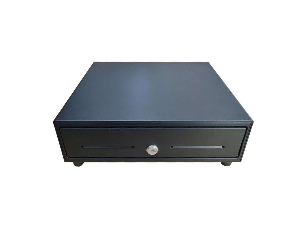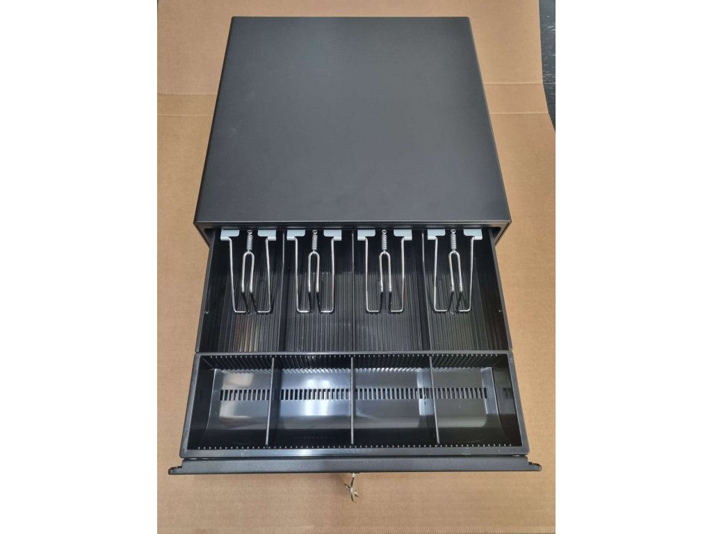 Pokladní zásuvka FEC POS-330 má flexibilní zásobníky na mince, čtyři kovové klipsy na bankovky a dvě přední externí přihrádky pro šeky / kupóny či kreditní karty. Uvolnění zásuvky má na starost mechanismus na zámek s klíčem. Toto velmi kvalitní zařízení s kompaktními rozměry, má životnost přes milion operací. Kovová zásuvka v elegantní černé barvě vás překvapí nízkou hmotností.