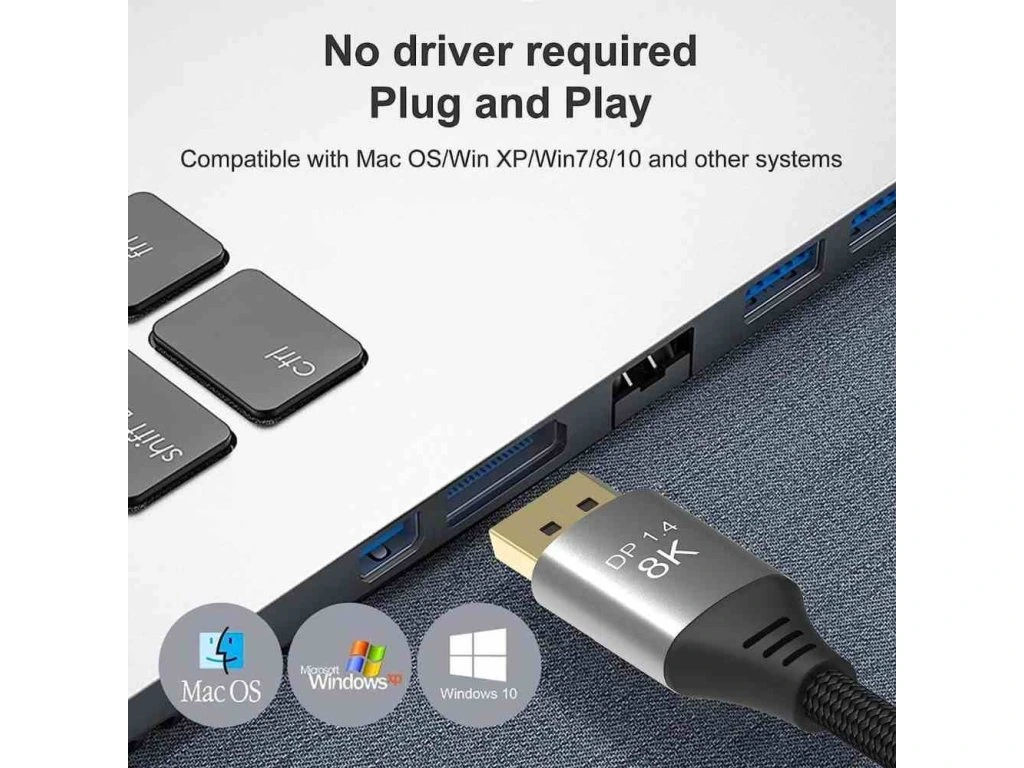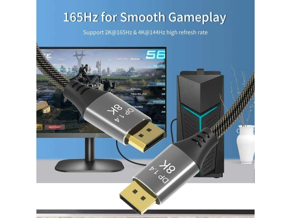 Kabel je vybaven standardem DisplayPort 1.4 a poskytuje obzvláště vysokou šířku pásma, ideální pro plynulé přehrávání obrazu bez trhání obrazovky nebo trhání při hraní her a rozlišení ostré jako břitva s rozlišením až 8K nebo 4k. Špičková konstrukce kabelu jej předurčuje pro všechny druhy instalací. Jedná se o flexibilní prémiový kabel s tenkými kovovými konektory, ochranou proti ohybu a barevně sladěným textilním kabelem (opletený textilní plášť kabelu monitoru je příjemný na dotek a šetrný k citlivým povrchům). DisplayPort 1.4 zvyšuje maximální datovou rychlost o 50% oproti rychlostem datového přenosu DisplayPort 1.2 na 32,4Gbit/s.