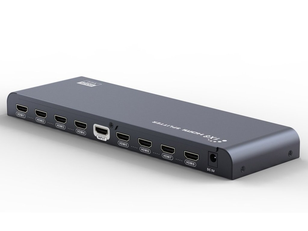 - Splitter obsahuje aktivní zesilovač signálu, který umožňuje zapojit za splitter kabely až do délky 8m. Kabely musí mít kvalitní měděné vodiče a dostatečný průřez vodičů vzhledem k délce kabelu a použitému rozlišení video signálu