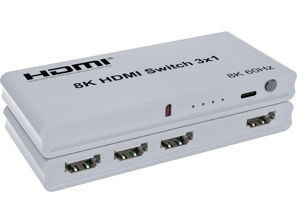 3 HDMI zařízení na vstupu sdílejí 1 výstupní monitor, projektor. Výběr vstupních zařízení: 1.automaticky, 2.stisknutím tlačítka na čele přepínače, 3.dálkovým ovladačem - Výběr vstupu/dálkovým ovládáním - Podpora nejvyššího rozlišení videa 8K@60Hz, 8K@30Hz, 4K@144Hz, 4K@60Hz, 4K@30Hz (3840x2160/60Hz), FULL HD 1080p@60Hz - Vstupní konektory: 3x HDMI samice - Výstupní konektor: 1x HDMI samice - Podpora 3D - Podpora HDCP 2.2, HDCP2.3 a HDCP1.4 - Podporuje VRR, ALLM, FreeSync, G-sync - Umožňuje funkci automatického přepínání - Podpora video formátu: 8/10/12 bitové barvy - Podpora HDR - Podpora zobrazení s jedním a vysokým rozlišením pro více zdrojů, jako jsou DVD, přehrávače, A/V přijímače a set top boxy - Napájecí adaptér 230V, DC 5V/1A součástí setu - Podpora formátu zvuku: DTS-HD/Dolby-trueHD/DTS/Dolby-AC3/DSD - Maximální přenosová rychlost: 40Gbps - Maximální pracovní proud: 500mA - Rozsah provozních teplot: -15°C až +55°C - Rozměry (D x Š x V): 123x56x15 (mm) - Hmotnost: 69g - Balení v papírové krabičce s napájecím adaptérem - Barva: šedá