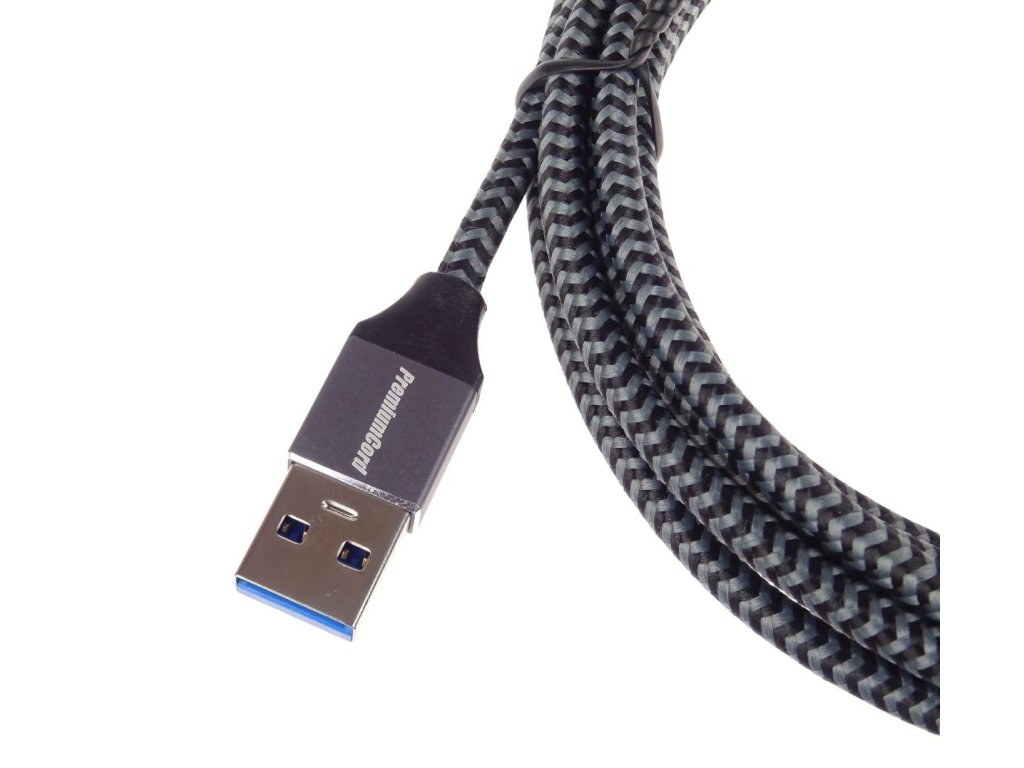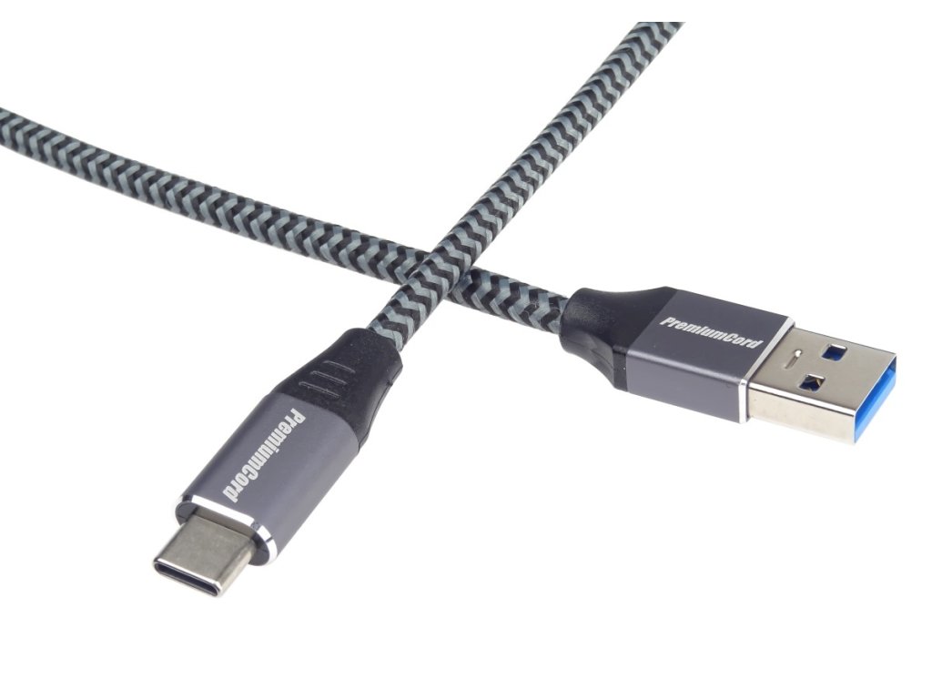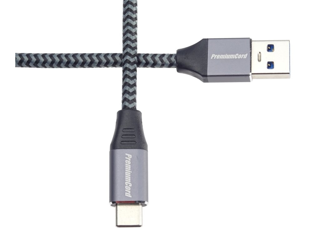 PremiumCord kabel USB-C - USB 3.0 A (USB 3.1 generation 1, 3A, 5Gbit/s) 2m bavlněný oplet a kovové hliníkové konektory