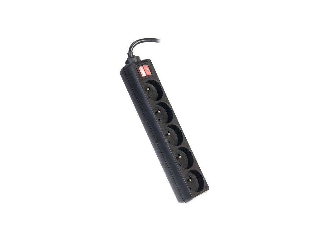PremiumCord Prodlužovací přívod 230V 5m 5 zásuvek + vypínač, černý