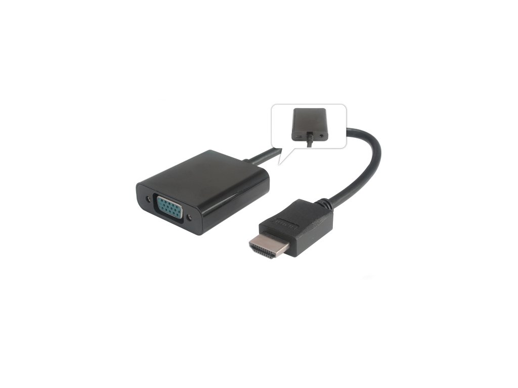 Převodník z HDMI na VGA s audiem 3,5 mm stereo jack umožňuje propojit zařízení s výstupním signálem HDMI na zobrazovací zařízení nebo TV, monitor s VGA konektorem a audio stereo jack 3,5mm.