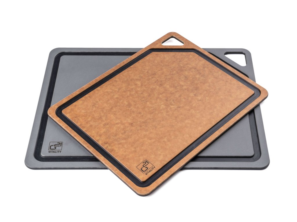Prkénko krájecí G21 EcoCut z přírodní celulózy - sada 2 ks, grafitové/hnědé