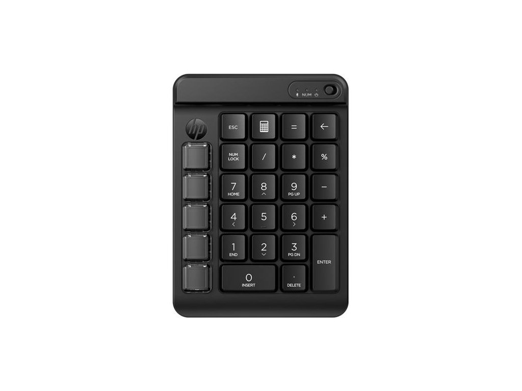 Táto malá Bluetooth klávesnica v sebe ukrýva množstvo funkcií. Vďaka vymeniteľným klávesom a deviatim programovateľným klávesom môžete naprogramovať a označiť vlastné klávesové skratky alebo automatizovať zložité stlačenia klávesov, aby ste každodenné úlohy mohli vykonávať za zlomok času. HP Accessory Center uľahčuje nastavenie a zmenu príkazov za chodu.