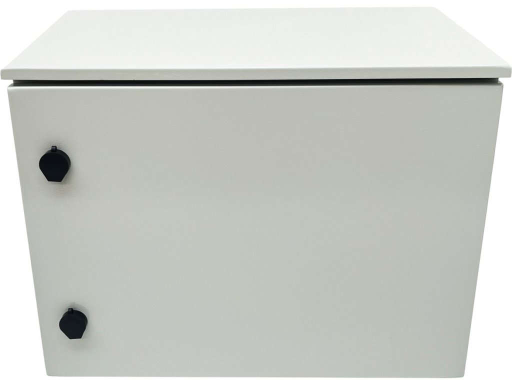 Rozvaděč je vyrobený z ocelových plechů o tloušťce 1,5 mm. Je vybavený dvojicí zámků se stejným klíčem. Zabezpečíte svá zařízení tak, abyste se k nim dostali jen vy. Na spodní straně se nachází 6 otvorů o průměru 25 mm s gumovými průchodkami. Na zadní části najdete 12 otvorů pro co nejpohodlnější uchycení ke stožáru či na zeď. Pokud některé z nich nevyužijete, oceníte gumové záslepky (součástí balení).
