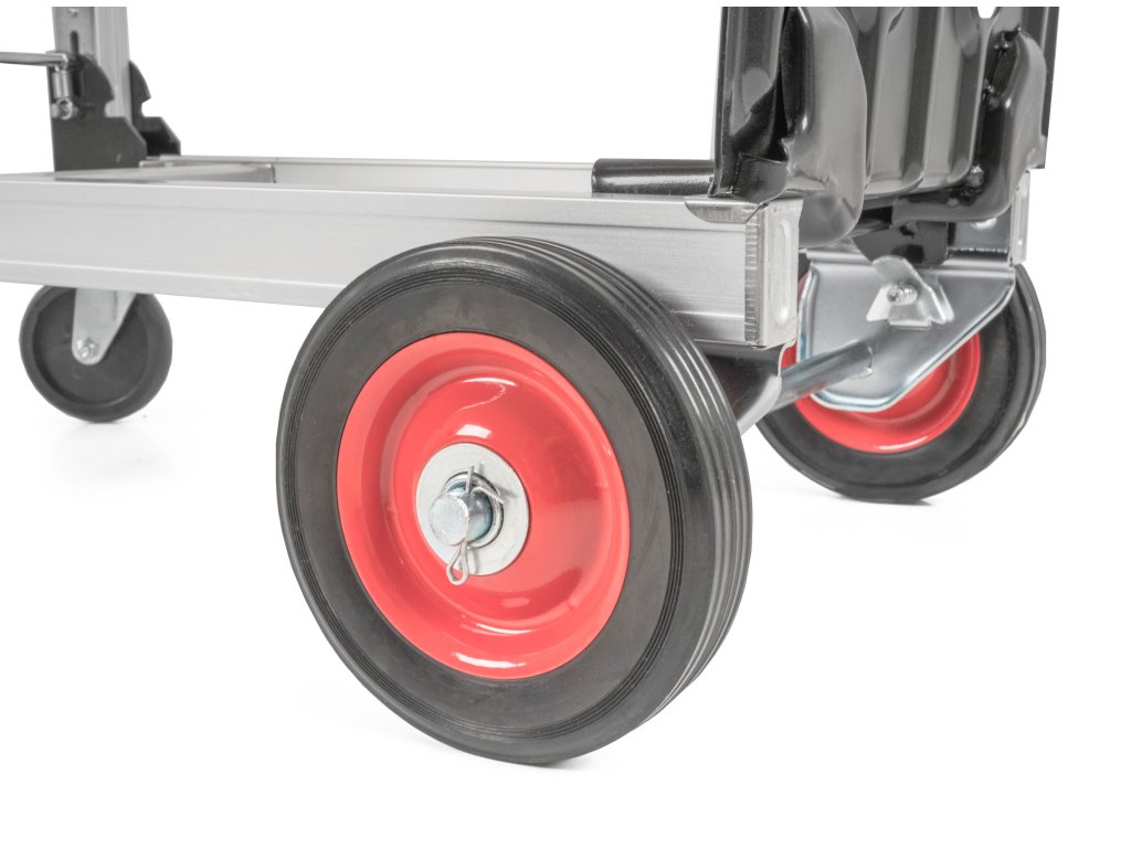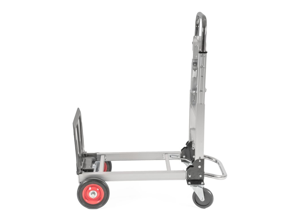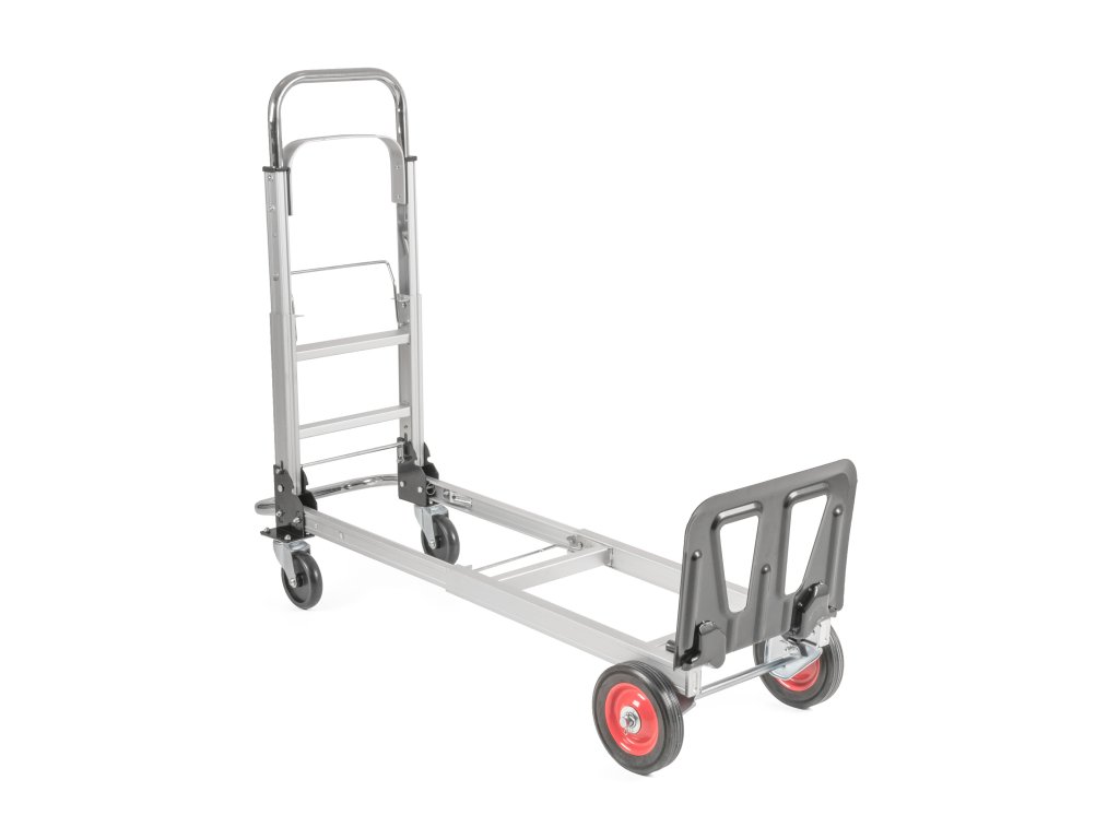 Rukojeť i konstrukce jsou teleskopické, takže si celý vozík snadno přizpůsobíte svým potřebám. Na výběr máte ze 2 poloh. Ve složeném stavu zabírá minimum místa, což oceníte v garáži, dílně nebo při přepravě v autě.