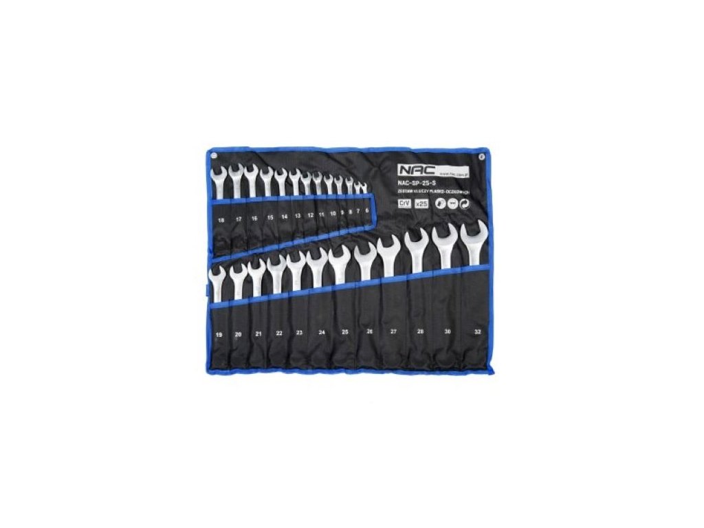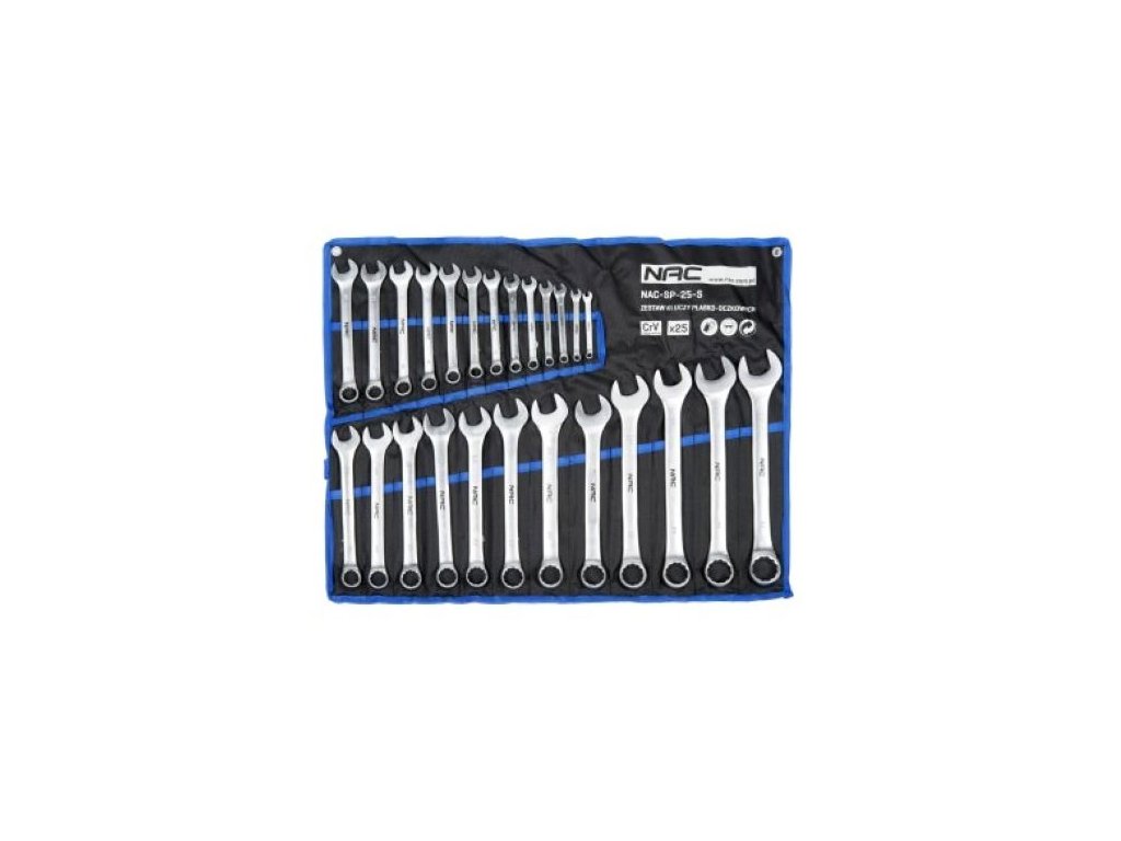 Pořiďte si sadu 25 očkoplochých klíčů NAC SP-25-S ve velikostech od 6 do 32 mm. Díky široké škále velikostí je vhodná pro běžné opravy, údržbu i profesionální využití v dílně či garáži. Každý klíč je vyroben z pevné chrom-vanadové oceli, která zajišťuje dlouhou životnost a spolehlivost i při náročnější práci. Samozřejmostí je odolnost vůči korozi. Sadu obdržíte v praktickém kufru s otvory, díky kterým ho můžete zavěsit na zeď.