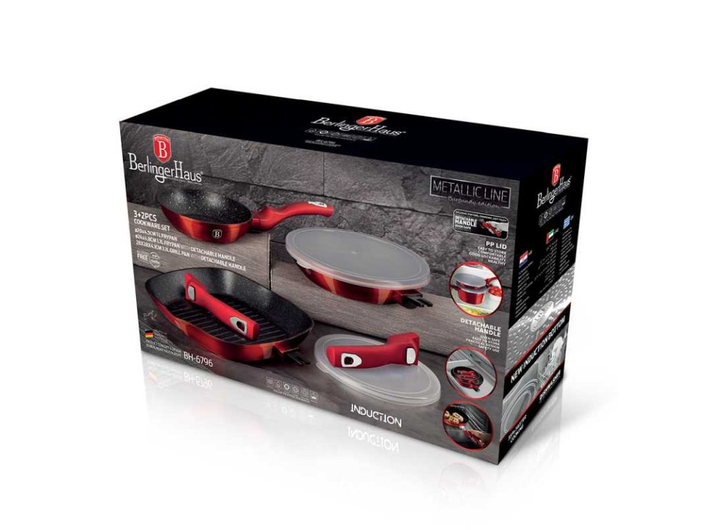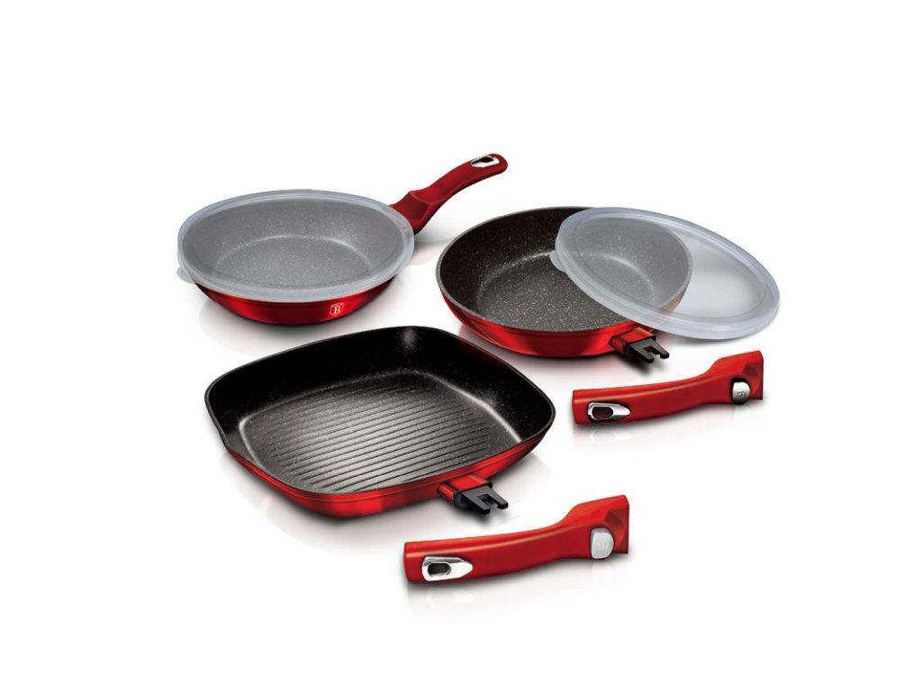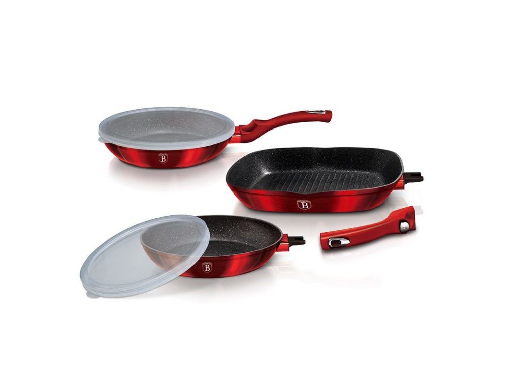Sada nádobí Berlingerhaus pánví s odnímatelnou rukojetí 5 ks Burgundy Metallic Line steak