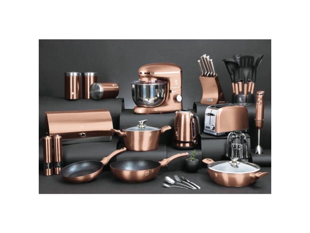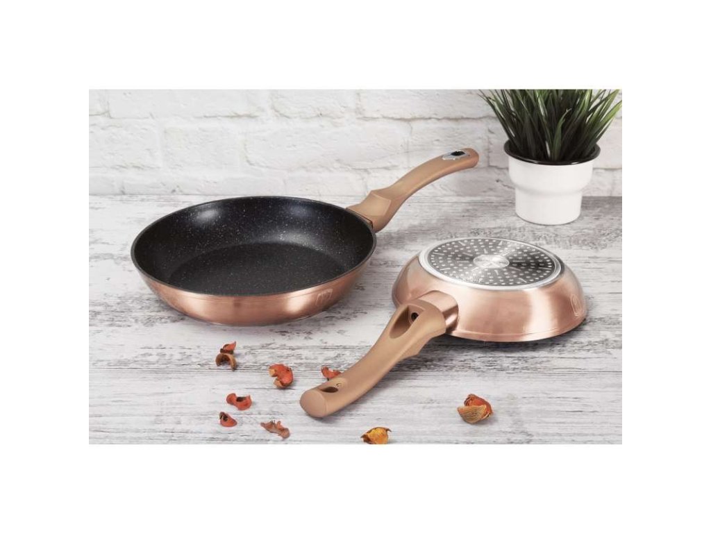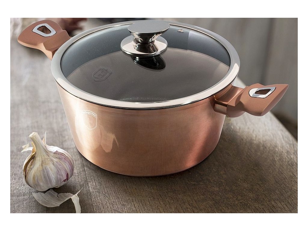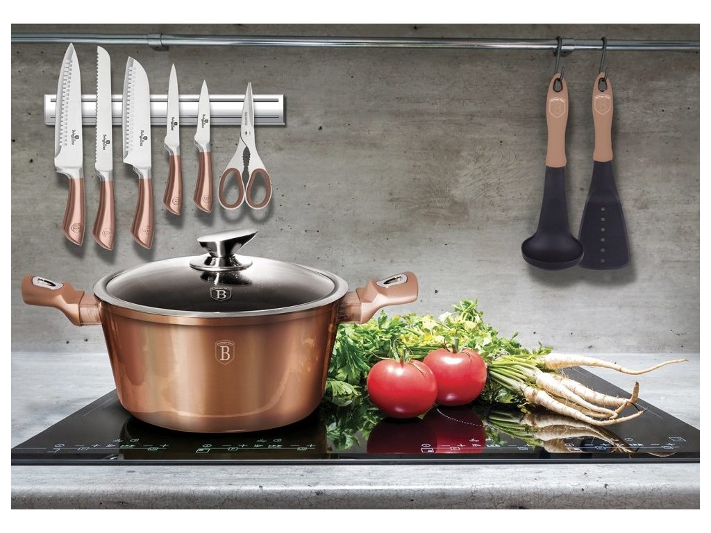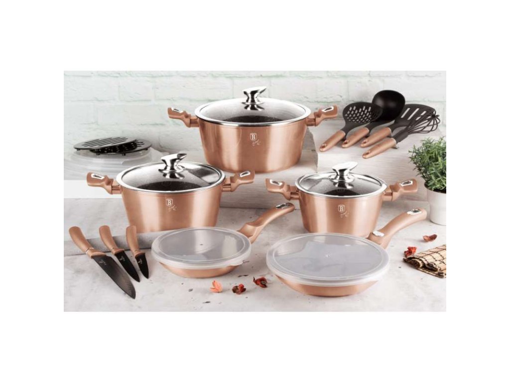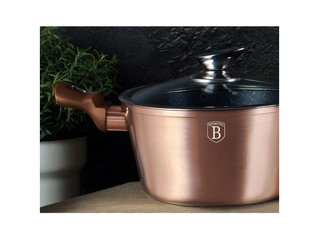 Luxusní sada nádobí BerlingerHaus z kolekce Rosegold Metallic Line v atraktivním designu zaujme nejen vzhledem, ale i špičkovými vlastnostmi. Díky 3vrstvému nepřilnavému povrchu s mramorovým efektem se potraviny nepřipalují a nádobí se snadno čistí. Sada je vhodná pro zdravé vaření s minimem tuku a pro všechny typy sporáků včetně indukce.