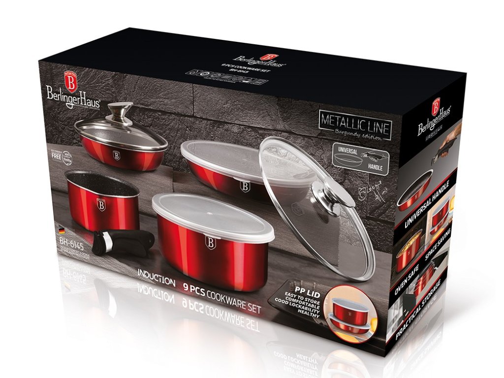 Sada nádobí Berlingerhaus s odnímatelnou rukojetí 9 ks Burgundy Metallic Line
