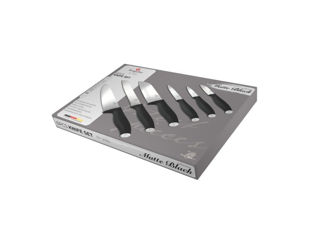 Sada Berlingerhaus Matte Black Collection se skládá z 6 nožů v magnetické dárkové krabičce. Ostré čepele z nerezové oceli jsou ručně broušené a zajišťují dlouhou výdrž a odolnost.