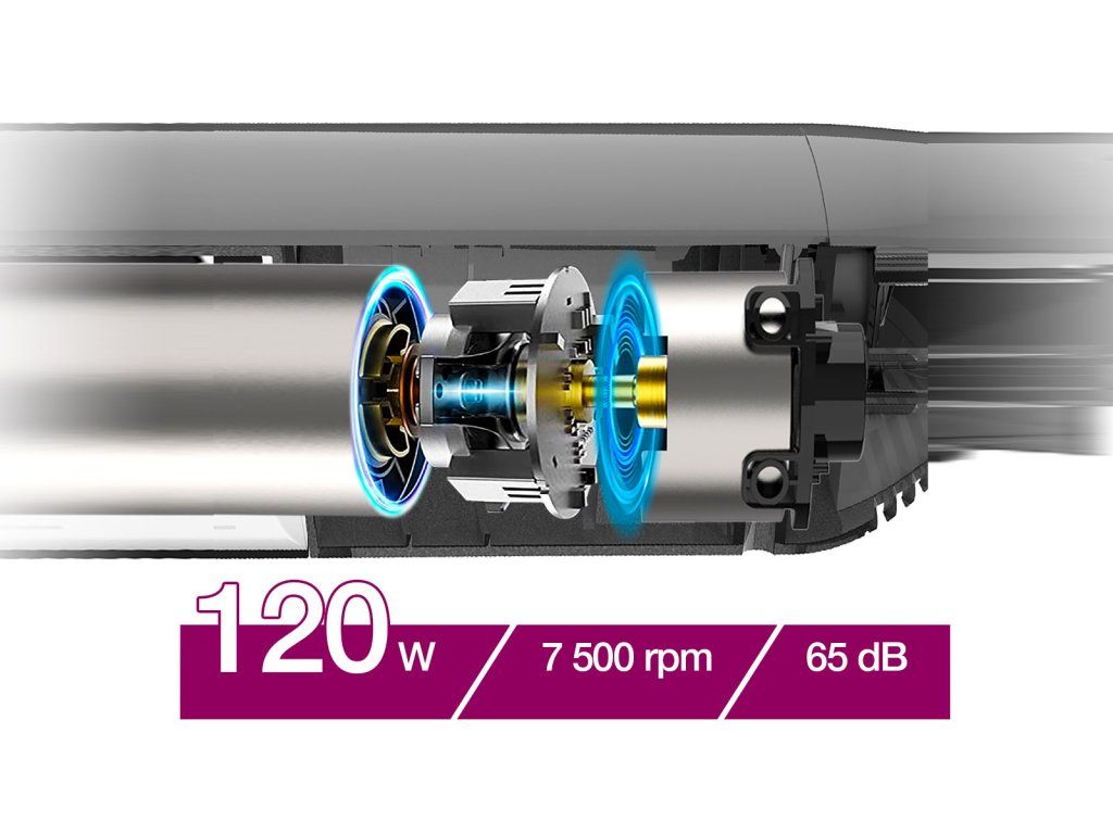 Osazený BLDC motor dosahuje výkonu až 120W, má o třetinu delší životnost, vyšší spolehlivost, tišší chod a hlavně úspornější provoz oproti klasickým motorům.Dvoustupňová filtrace s omyvatelným HEPA filtrem