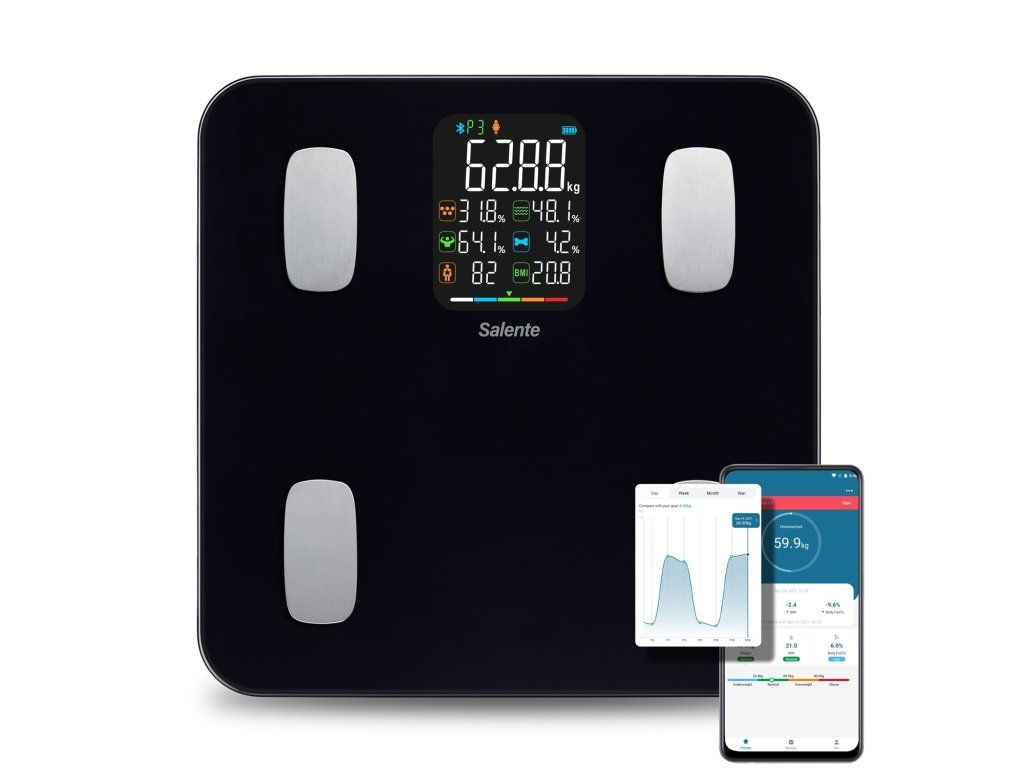 Zapomeňte na nekonečné sledování toho, jestli máte o kilo víc nebo o kilo míň. Salente MaxFit se na vás nedívá jen optikou jednoho čísla. Díkyzabudovaným senzorům