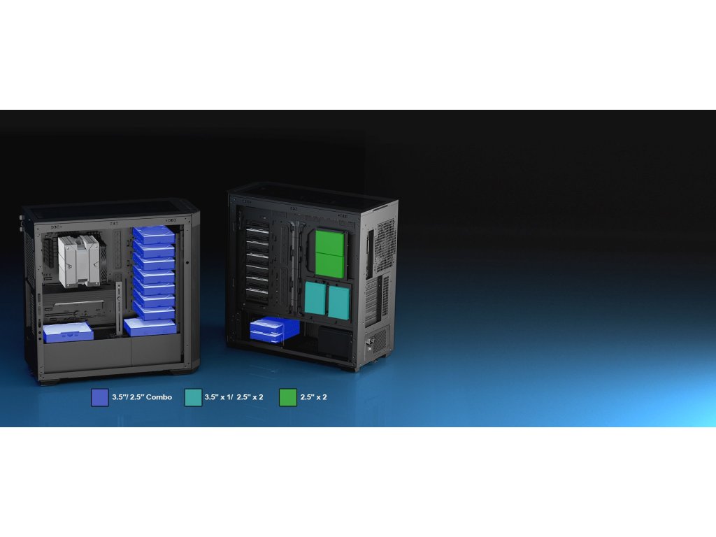 - Možnost instalace až 11 ventilátorů a radiátorů až 420 mm