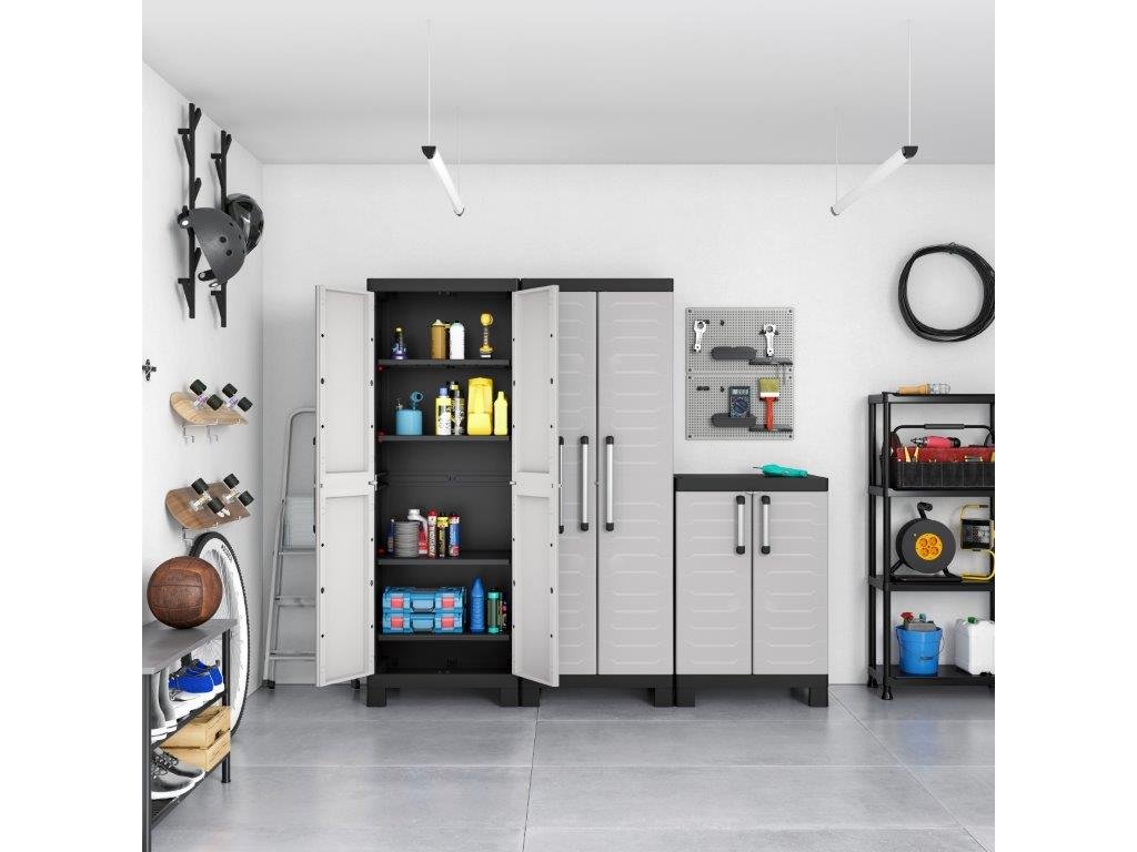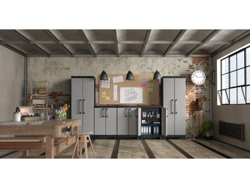 Skříň Keter Detroit High obsahuje celkem 4 přídavné police, které maximálně zpřehlední organizaci vnitřního prostoru. Každá z nich využívá bezpečnostní pojistku SLO pro snadné výškové přizpůsobení a rovněž nabízí maximální nosnost až 15 kg, což přijde vhod pro výrazně těžší předměty všeho druhu. V útrobách skříně tak pohodlně uchováte i rozličné dílenské a zahradní nářadí, které by se jinam nevešlo. Velkou výhodou produktové řady Keter Detroit je také jednotný spojovací systém, díky kterému vytvoříte kompletní skříňovou stěnu pro všestranné využití dle vašich potřeb a preferencí.
