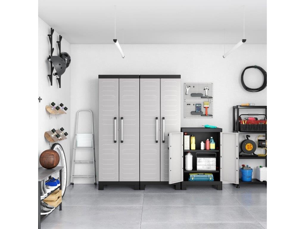 Bezúdržbová úložná skříň Keter Detroit High se vyznačuje vysokou odolností vůči atmosférickým vlivům a mechanickému opotřebení, proto ji můžete využívat ve vnitřních i venkovních prostorách zcela bez omezení. Díky univerzálnímu šedo-černému provedení zapadne do téměř každého prostoru bez ohledu na jeho konceptuální styl a své uplatnění nalezne například v domácnosti, v garáži, v kůlně, ve sklepě, na balkoně, na terase, pod přístřeškem na zahradě či kdekoliv jinde, kde zrovna bude zapotřebí.