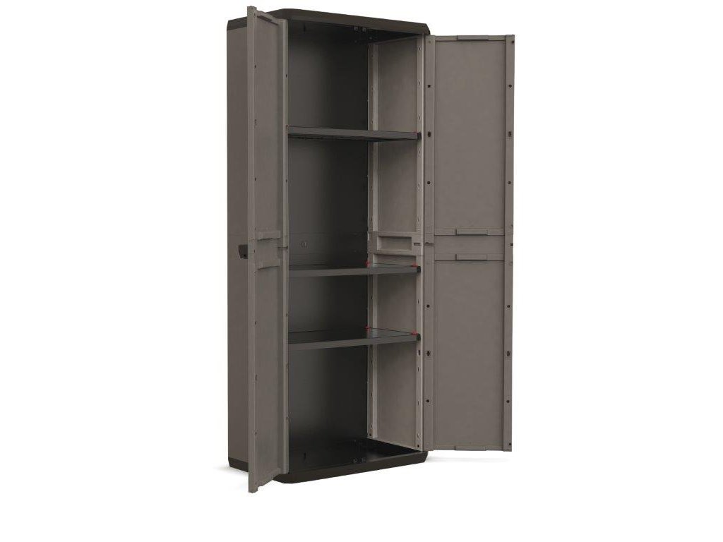 Odolná skříň Keter Piú High je ideálním řešením pro uskladnění nářadí, pomůcek a vybavení. Můžete ji umístit do garáže, sklepa, na chatu i na terasu bez obav z poničení - je vyrobena z odolného plastu. Skříň Keter nabízí tři nastavitelné police s nosností 15 kg a možnost uzamčení pro větší bezpečnost.