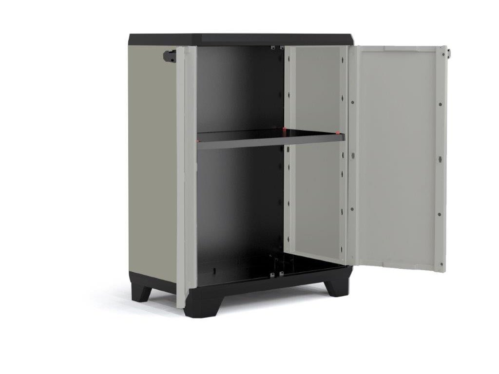 - 1x skříň Keter Planet Low s policemi, nožičkami a uzamykatelnými dveřmi
