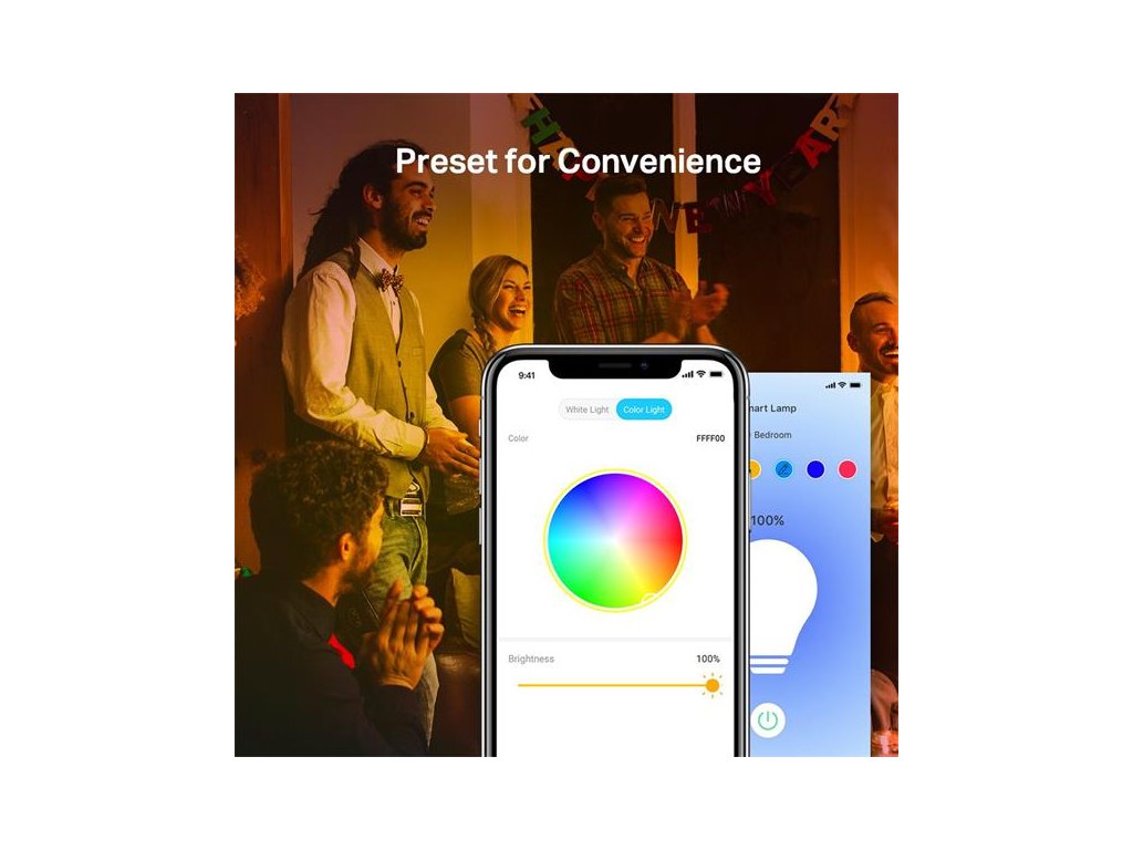 Smart Wi-Fi Light Bulb, Multicolor SPEC: 2.4 GHz, IEEE 802.11b/g/n, E27 Base, 220–240 V, 50/60 Hz, Brightness: W: 806 lm