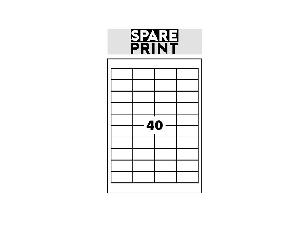 SPARE PRINT PREMIUM Samolepicí etikety bílé, 100 archů A4 v krabici (1arch/40x etiketa 48,5x25,4mm)