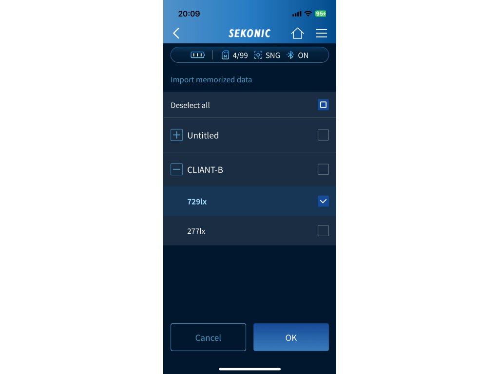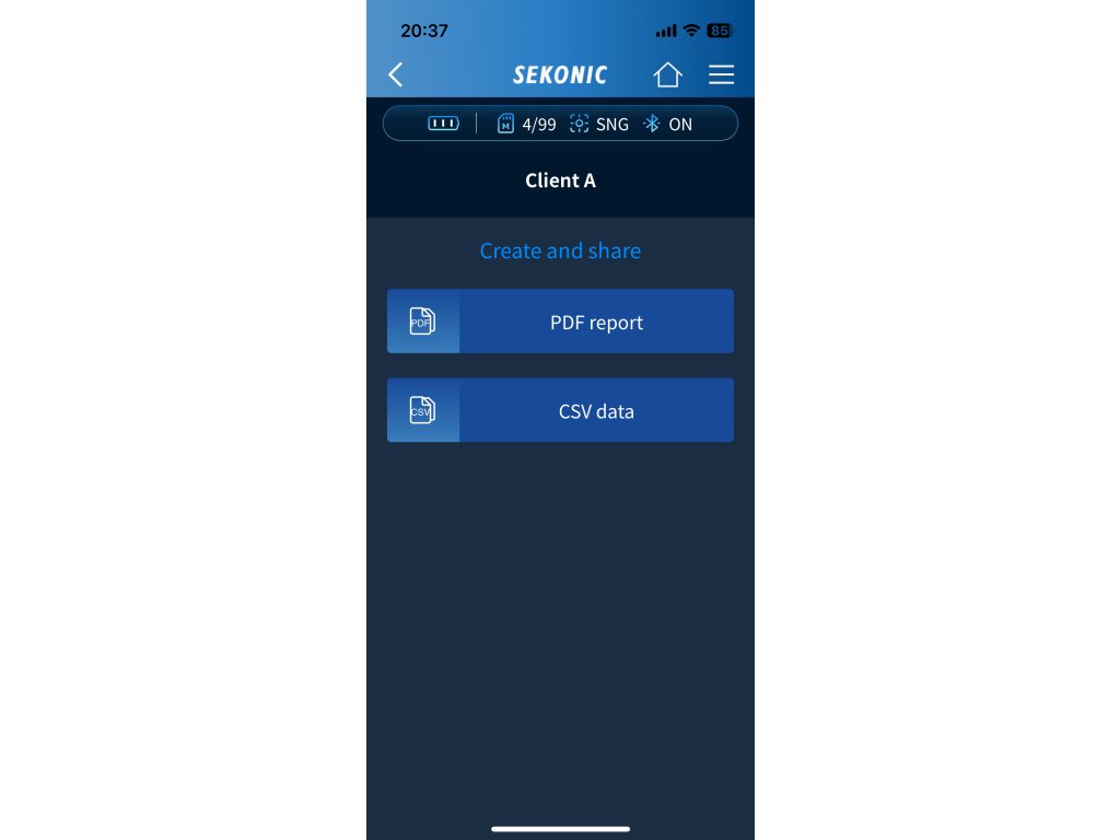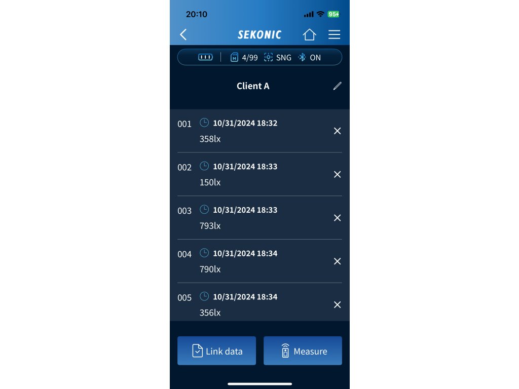- Sdílení dat z aplikace SEKONIC LD prostřednictvím chytrého zařízení – Rychlé a snadné sdílení protokolů, dat z měření s poznámkami a obrázky na místě prostřednictvím chytrého telefonu nebo tabletu.