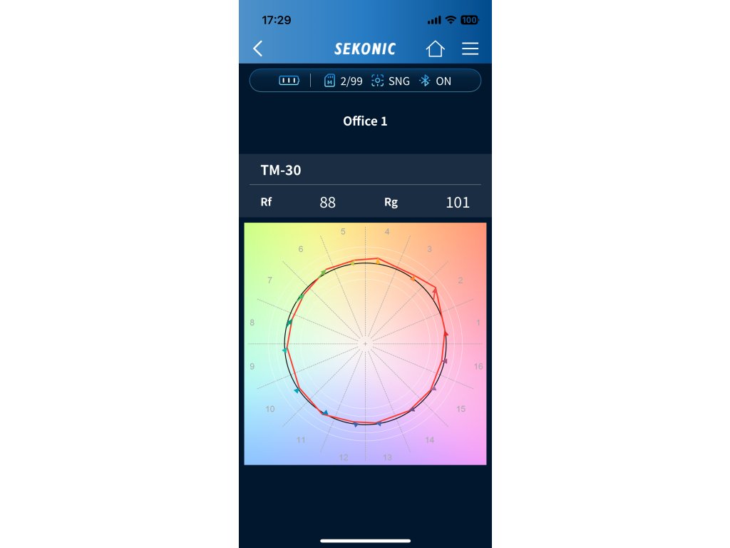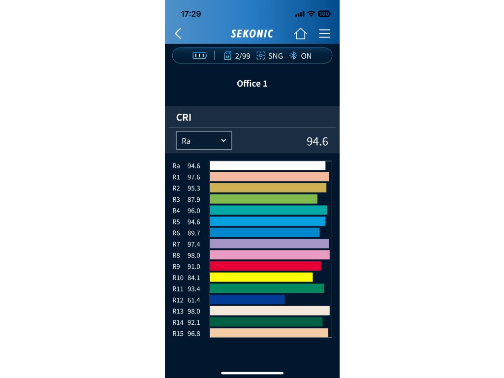 Sekonic C-4000 Spectrometer využívá pokročilý spektrální senzor, který měří světlo v širokém rozsahu vlnových délek s vysokou přesností. Přístroj vám poskytne detailní analýzu barevné teploty (CCT), spektrální distribuce světla a hodnoty CRI (Color Rendering Index) a TLCI (Television Lighting Consistency Index), což je klíčové pro profesionální práci s kamerou nebo fotoaparátem. Kromě standardního CRI, který posuzuje věrnost barev pod umělým osvětlením, C-4000 analyzuje i moderní indexy jako SSI (Spectral Similarity Index) a TM-30-18, díky čemuž máte k dispozici nejaktuálnější světelné standardy.