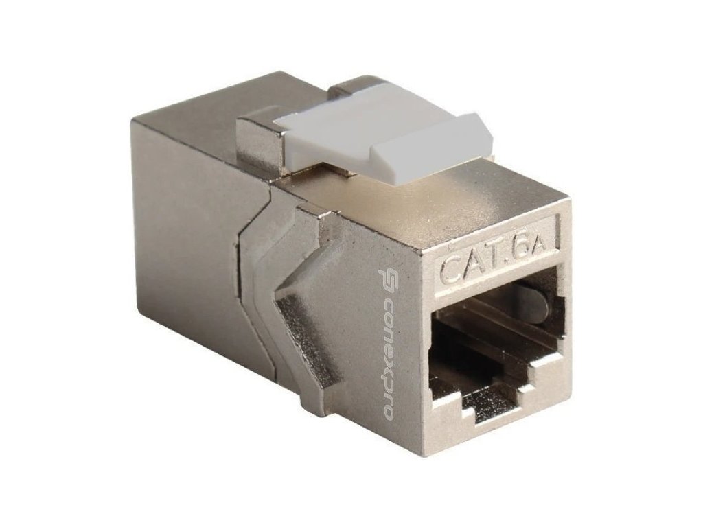 Spojka Conexpro STP 8/8 RJ45 / Cat.6A ve stříbrném provedení je praktické řešení pro spojení dvou síťových kabelů. Podporuje kabely kategorie CAT6A a nižší a zajišťuje spolehlivý přenos díky stíněnému provedení.