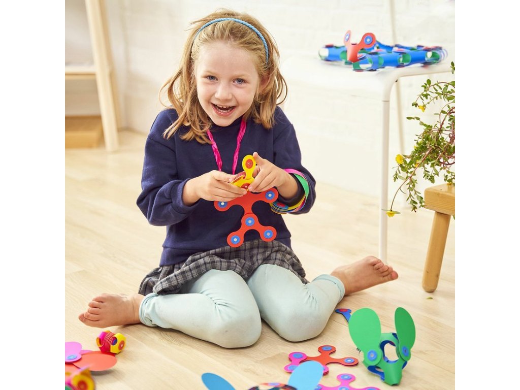 Stavebnice CLIXO Rainbow umožňuje dětem popustit uzdu fantazii a vytvořit nepřeberné množství tvarů a struktur. Každý dílek je navržen tak, aby se dal snadno ohýbat, kroutit a připevnit pomocí výkonných magnetů, které drží i na větší vzdálenost. Dílky ve tvaru čtyřlístků umožňují stavbu jak 2D plochých modelů, tak i 3D konstrukcí, které lze dokonce zavěsit. Díky možnosti otáčení o 360° a fixace v několika pozicích stavebnice poskytuje skutečně interaktivní herní zážitek, při kterém si děti procvičují jemnou motoriku, koordinaci ruky a oka i schopnost soustředění.