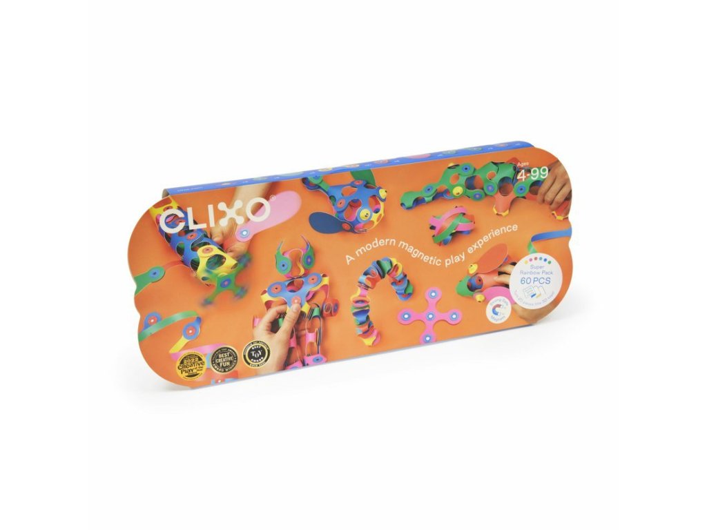 CLIXO Super Rainbow je magnetická stavebnice inspirovaná origami, která přináší duhové barvy do každé hry a podporuje kreativitu i učení. Díky lehké a flexibilní konstrukci a chytrému systému magnetů postavíte nápadité 2D i 3D modely a hotové výtvory snadno zavěsíte
