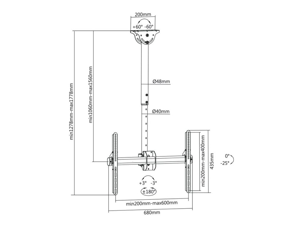 STELL stropní plohovatelný držák single na TV 40"- 70" SHO 3900, nosnost 50kg - černá