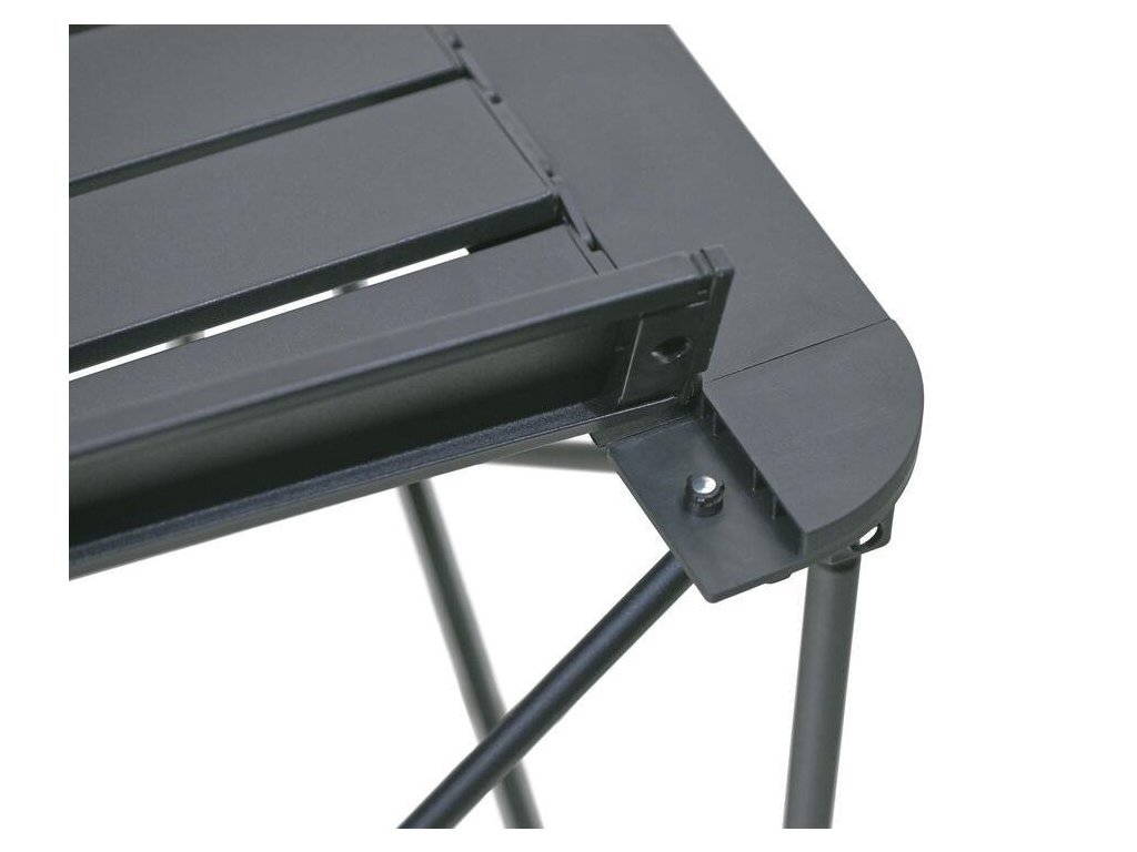 Ve spodní části nohou ocelové konstrukce najdete plastové patky. Zajišťují větší stabilitu stolku. Deska z lamel o rozměrech 52 x 52 cm vám zajistí dostatek prostoru na vaše věci. Odložíte na ni potraviny, nápoje nebo různé turistické potřeby.