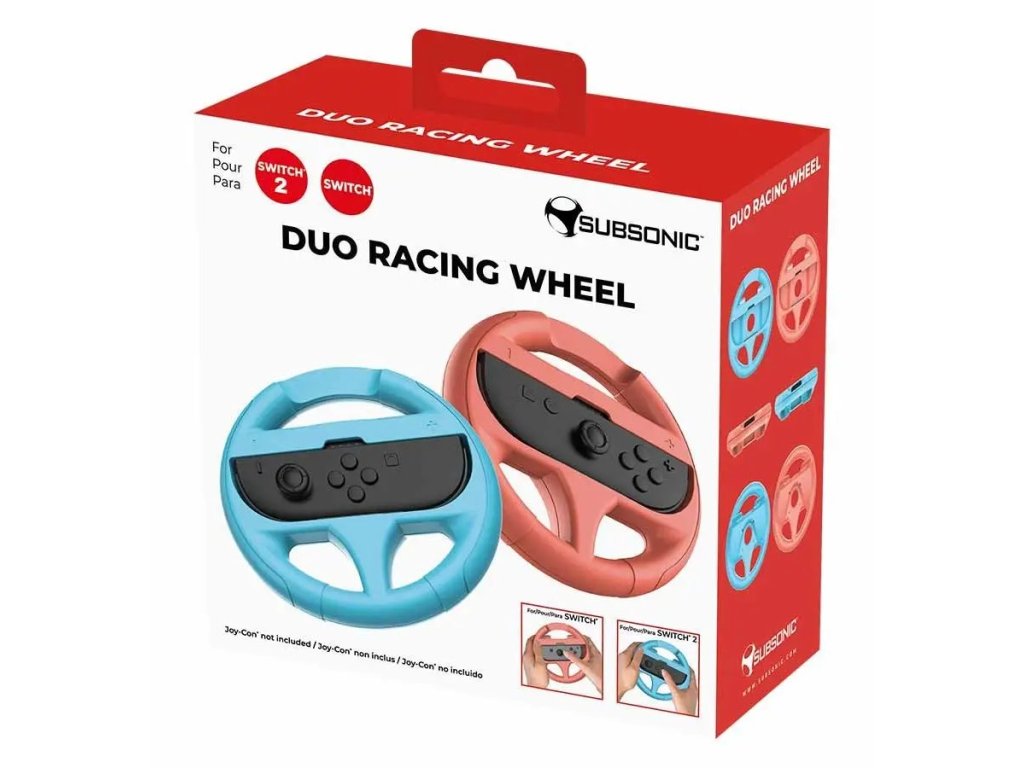 Sada volantů SUBSONIC by SUPERDRIVE pro herní konzole Nintendo Switch a Nintendo Switch 2, se kterou si závodní hry užijete o něco intenzivněji. Volanty poslouží k realističtějšímu ovládání a pevnějšímu uchopení během jízdy. Balení obsahuje dvojici volantů, takže se dostane i na vašeho soupeře, aby se nemohl vymlouvat.