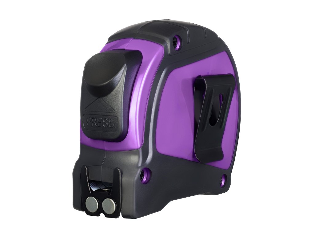 - Vlastnosti: se stupnicí na obou stranách, s magnetickým háčkem, spona na opasek, pogumovaný povrch pouzdra, řemínek na ruku, aretační mechanismus
