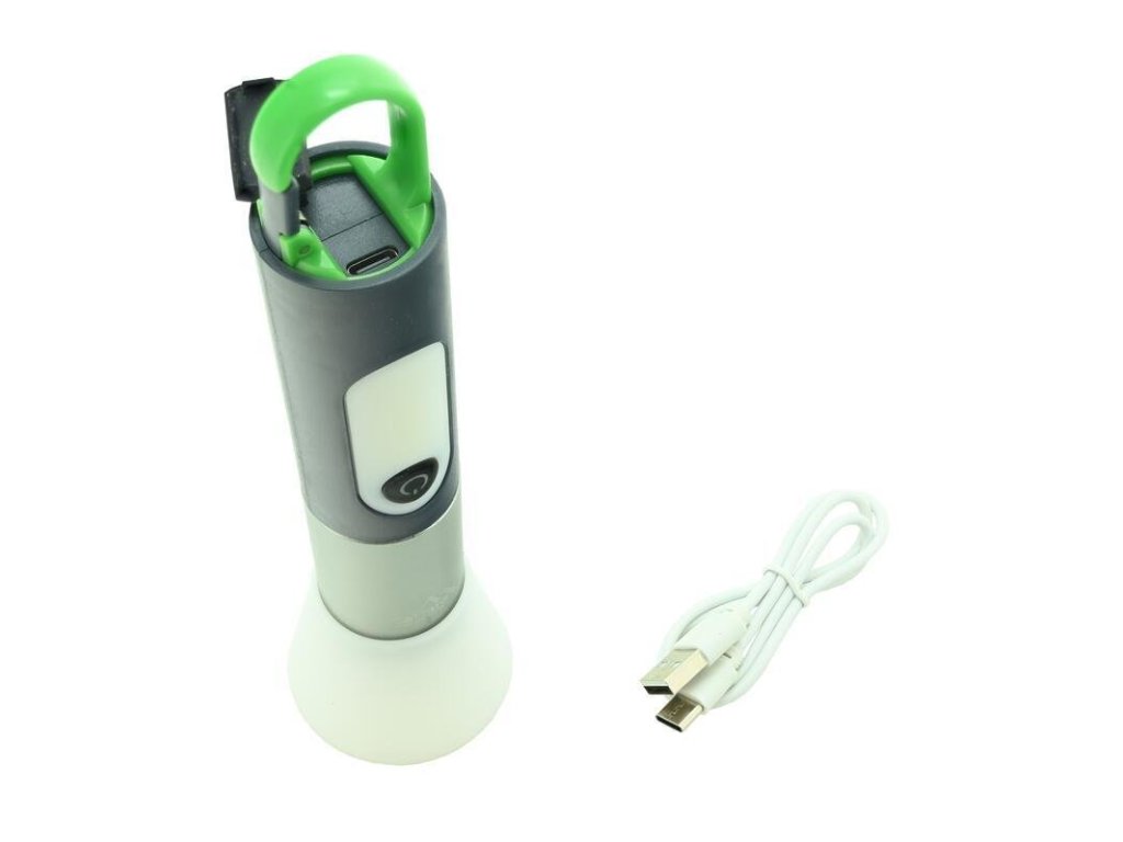- Další výbava: světelný kužel, nabíjecí zásuvka s krytkou, karabinka pro zavěšení