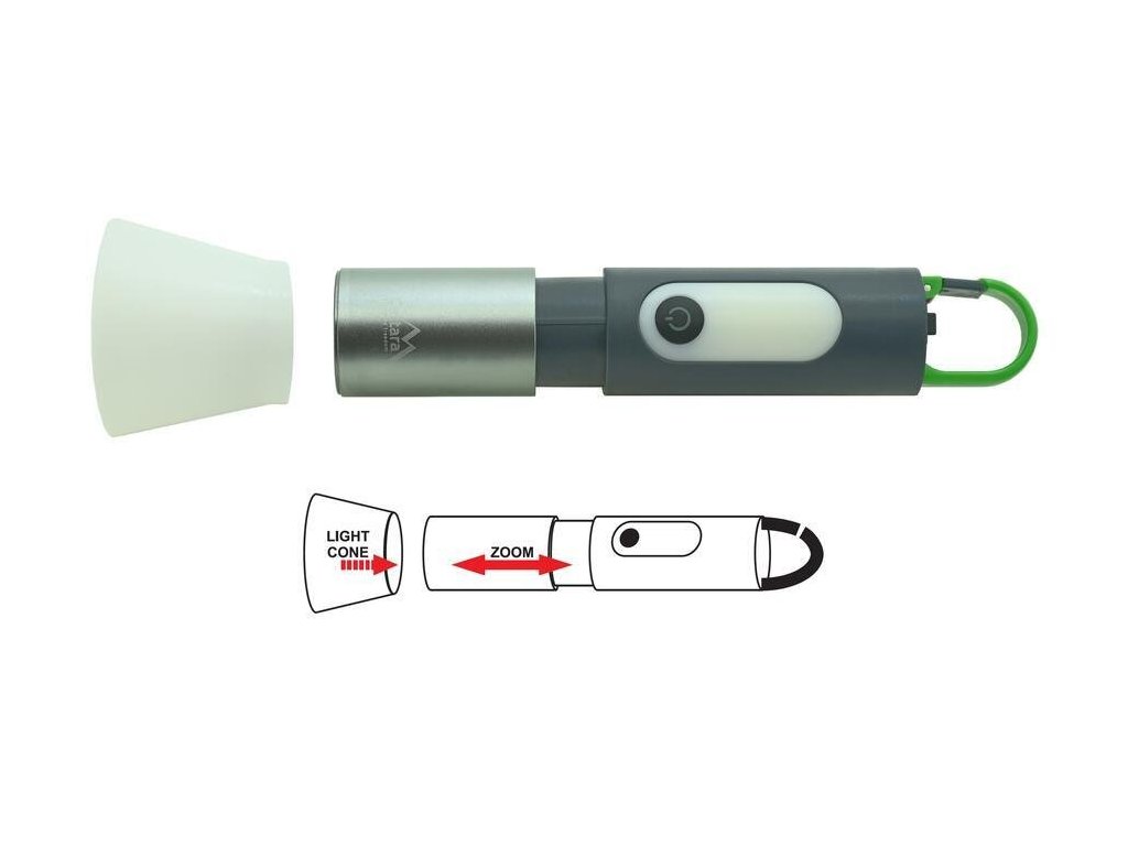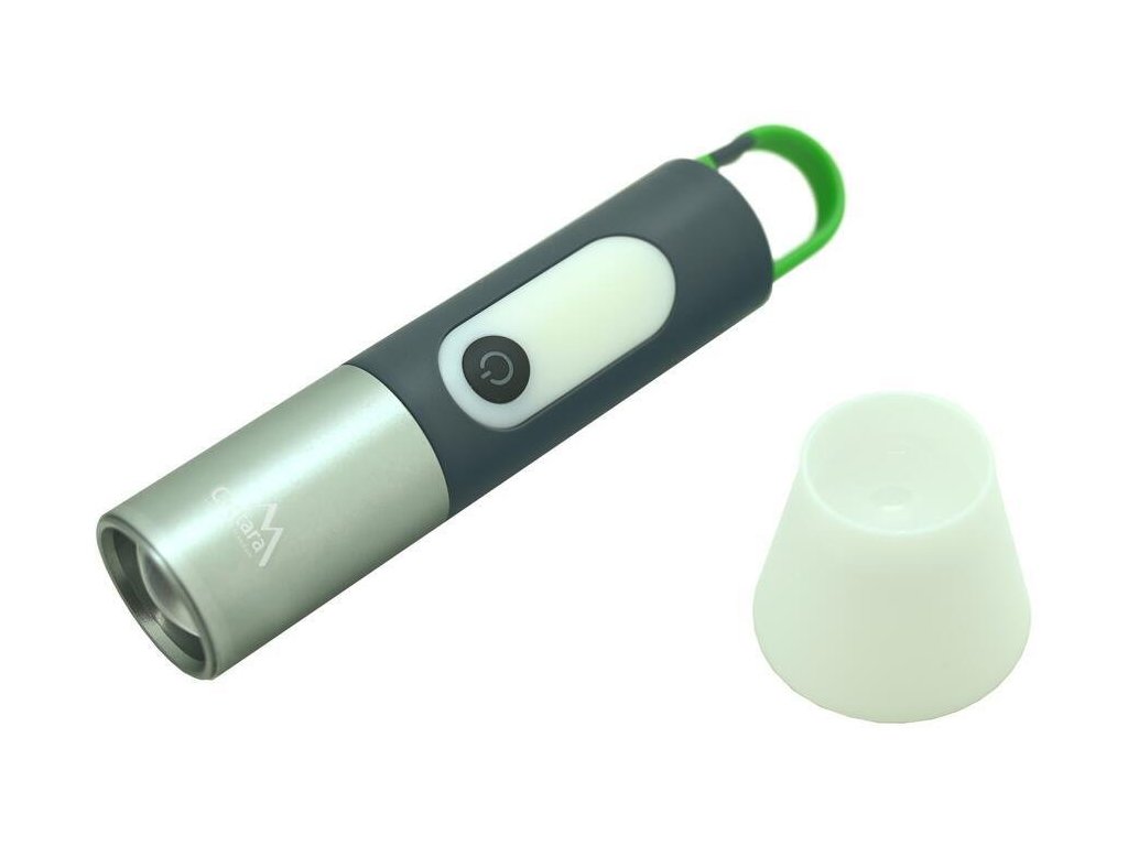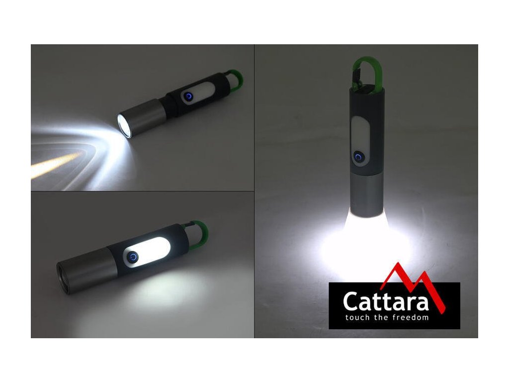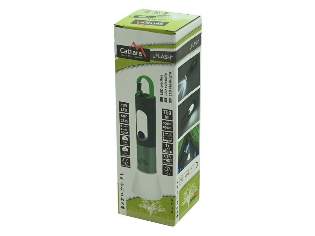 Výkonná LED svítilna FLASH značky Cattara je praktický a univerzální pomocník pro každou situaci. Hlavní 10W LED světlo je vybavené reflektorem, který ve spojení se skleněnou čočkou zajistí optický výkon až 750 lm. Díky praktické funkci ZOOM s plynulou regulací dosvitu snadno přizpůsobíte intenzitu světla aktuálním podmínkám. Stačí jen posunout hlavu svítilny. Součástí balení je také nasazovací světelný kužel, který příjemně rozptýlí světlo podobně jako klasická žárovka. To je ideální pro stanování nebo večerní posezení.