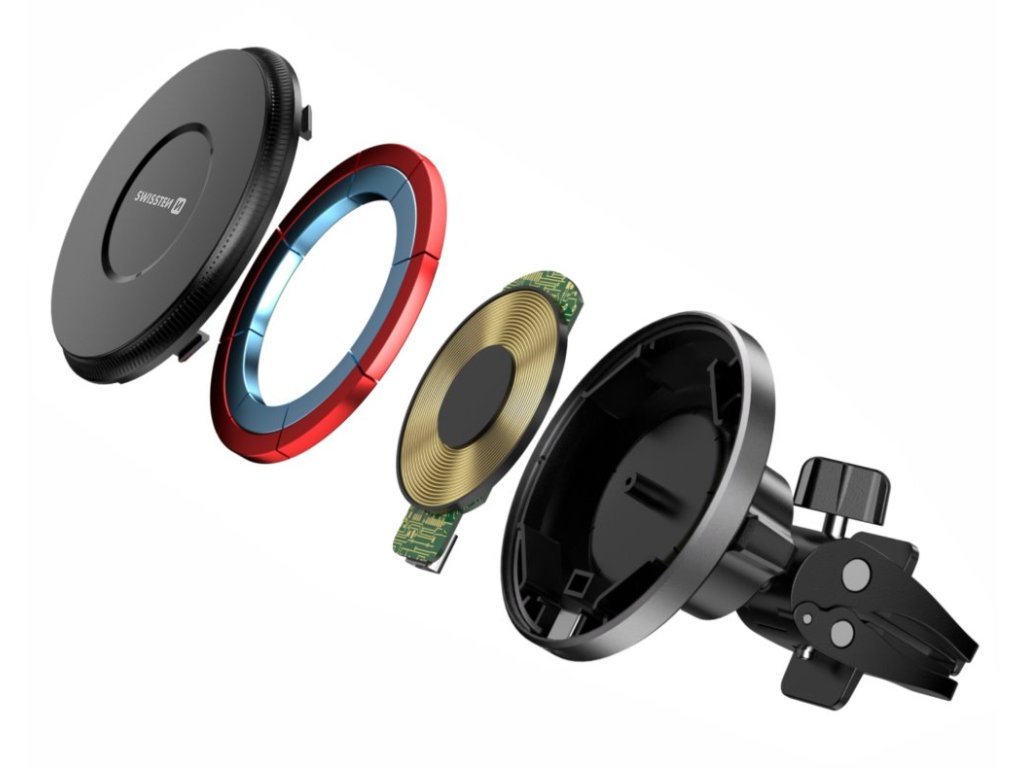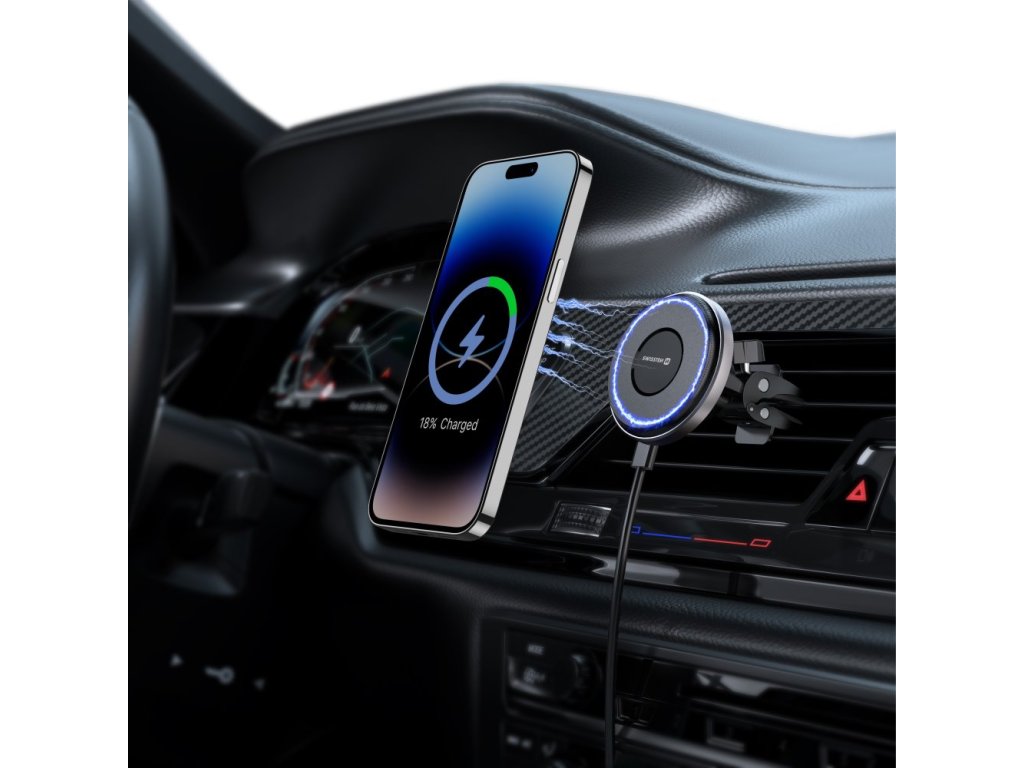Swissten magnetický držák do ventilace auta airhold s bezdrátovým nabíjením 15w / 7,5w (kompatibilní s magsafe)