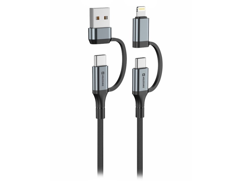 SWISSTEN 4 v 1 USB/USB-C na USB-C/Lightning 1,5 m černý
