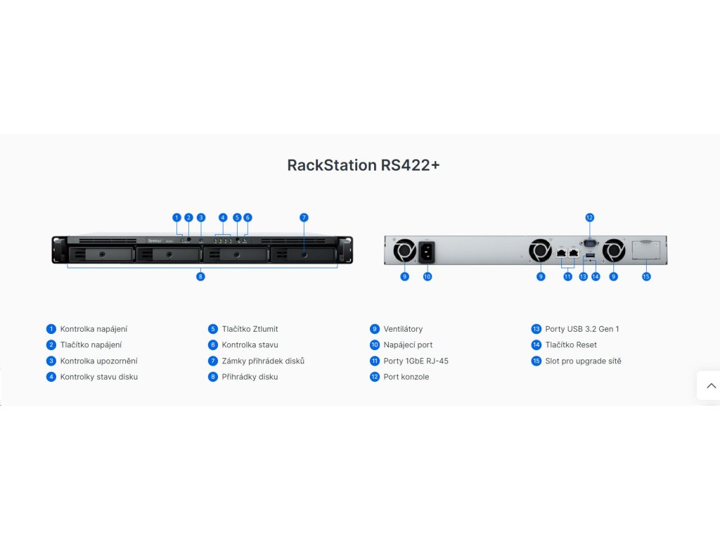 Ohodnoťte produkt Synology RackStation RS422+ 4-bay NAS, rack 1U, CPU DC AMD Ryzen R1600 64bit, RAM 2GB, 1x USB 3.2, 2x GLAN, 1x PCIe x2