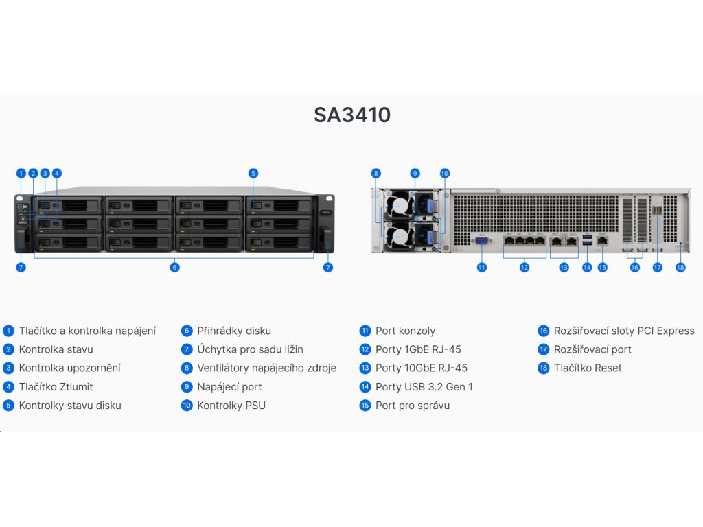 | RJ-45 10GbE LAN port | 2 (s podporou funkcí Link Aggregation / Failover) | 2 (s podporou funkcí Link Aggregation / Failover) | |