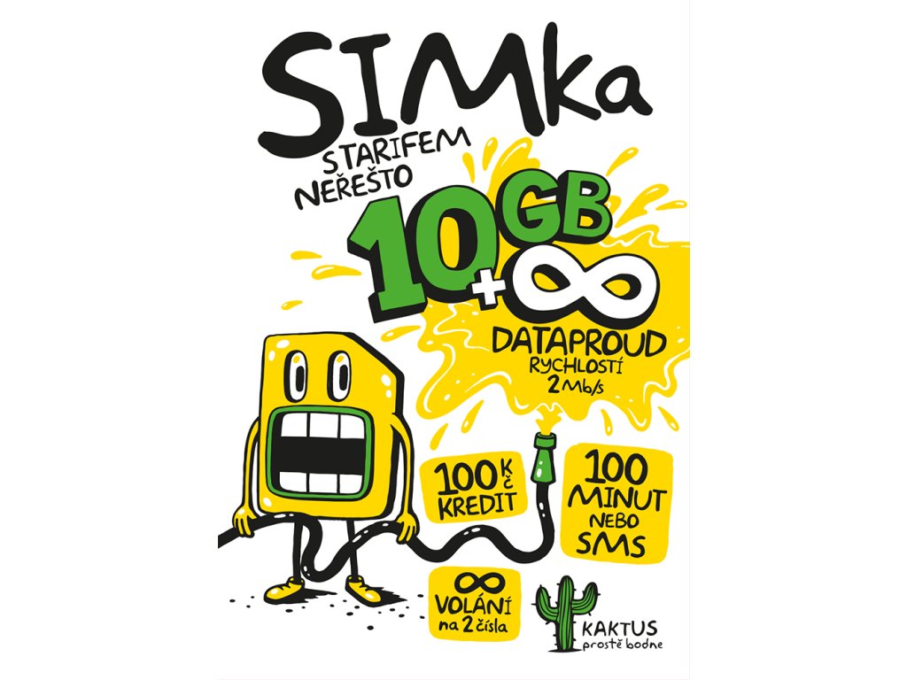 SIMka předplaceným tarifem Neřešto za 350 a 100 Kč kreditu. V ceně karty je tarif Neřešto s 10 GB + neomezená data rychlostí 2 Mb/s, 100 minut nebo SMS a neomezené volání na 2 čísla podle výběru. Platba za tarif probíha automaticky z přidané platební karty.