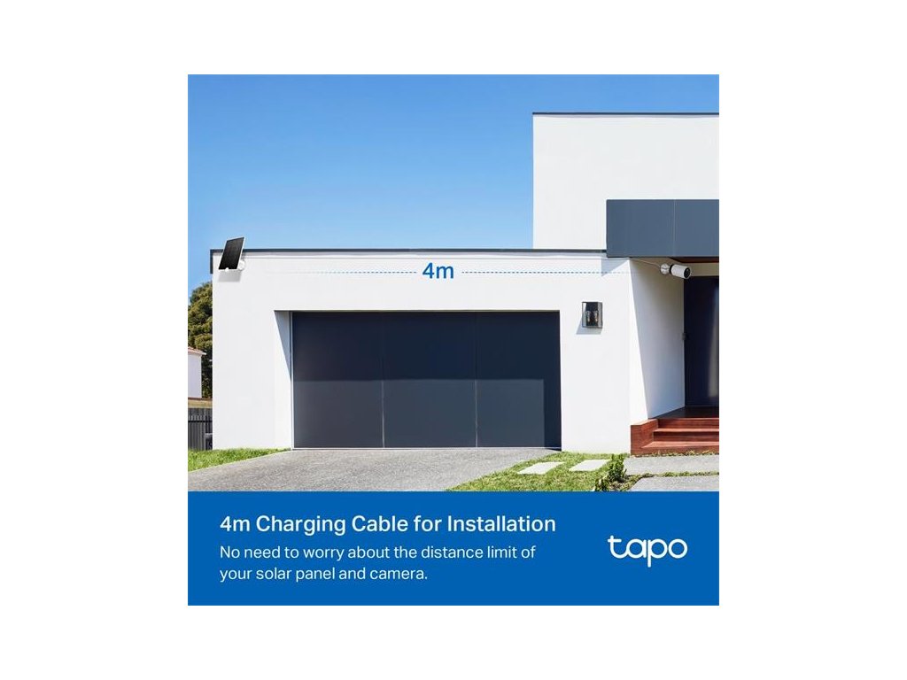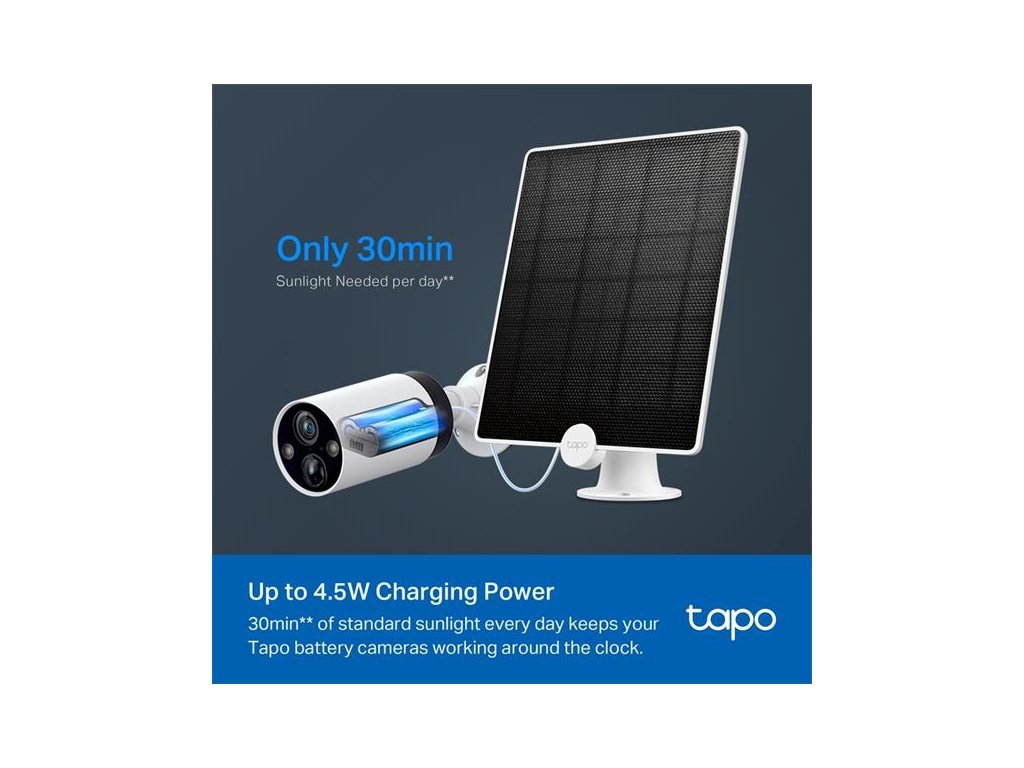 Tapo Solar Panel SPEC: 5.2V 4.5W FEATURE: Non-Stop Power, Works with Tapo Battery Camera, 4m Charging Cable, 360° Adjust