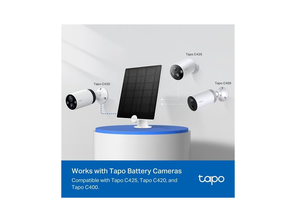 Non-Stop Solar Power-Zachytáva bezplatnú, čistú slnečnú energiu a poskytuje nepretržité napájanie pre vaše kamery Tapo napájané z batérie (Tapo C425, Tapo C420 a Tapo C400), aby vás ochránili po celý rok.