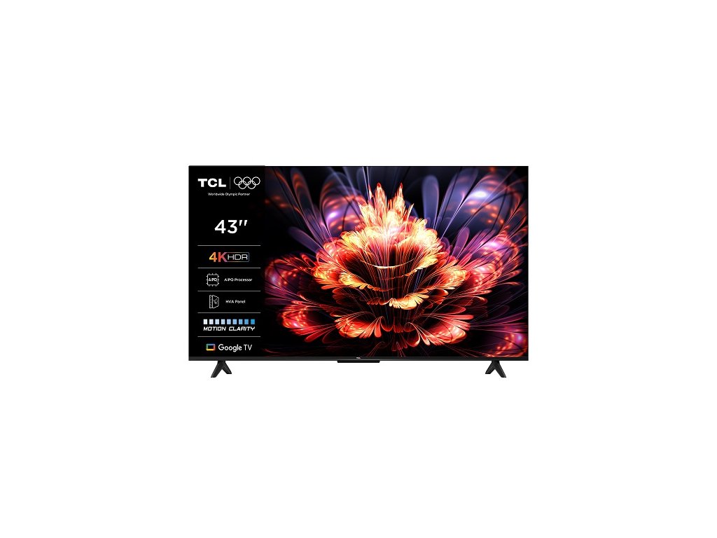 Televize – Google TV, LED, 109cm, 4K Ultra HD, 50/60 Hz, HDR10, antireflexní obraz, DVB-T2/S2/C, 3× HDMI, 1× USB, LAN, WiFi, Bluetooth, DLNA, Chromecast, Miracast, HbbTV 2.0.3, herní režim, hlasové ovládaní, Google Assistant, Apple Airplay 2, párování s mobilním zařízením, Oneplay, VESA 200×200, repro 20 W, Dolby Audio, Prostorový zvuk, Dolby Digital Plus, energetická třída F