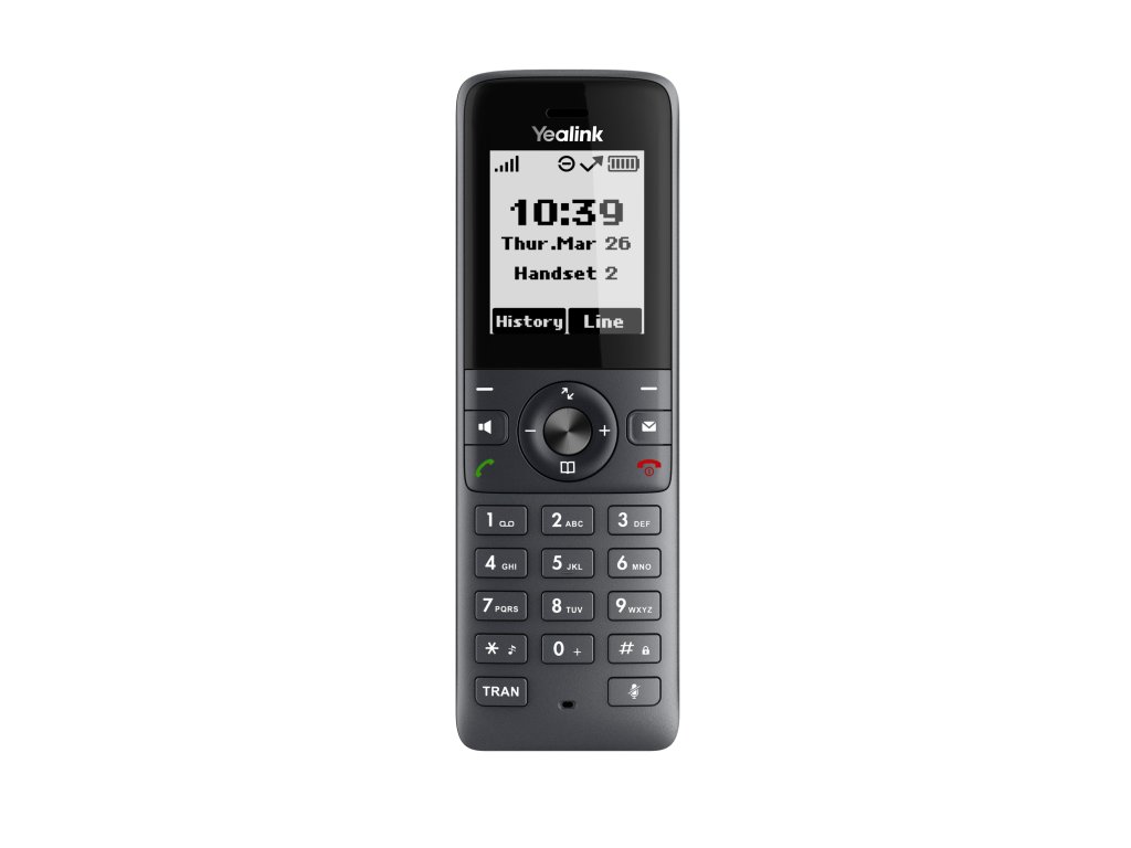 Pořiďte si do kanceláře moderní bezdrátový telefon Yealink W71H. Má elegantní design, pohodlné ovládání a vylepšenou výdrž baterie. Díky technologii DECT poskytuje vynikající kvalitu zvuku, stabilní připojení a šifrované hovory pro vyšší úroveň bezpečnosti. Samozřejmostí je také výborný dosah signálu – až 50 m uvnitř a až 300 m venku. Telefon je kompatibilní s širokou škálou DECT základen a je ideální volbou pro zdravotnická zařízení, školy, kanceláře i výrobní haly. Při použití se základnou Yealink W70B podporuje až 10 sluchátek, 10 SIP účtů, 3cestnou komunikaci a až 20 současných hovorů (2 hovory na každé sluchátko).
